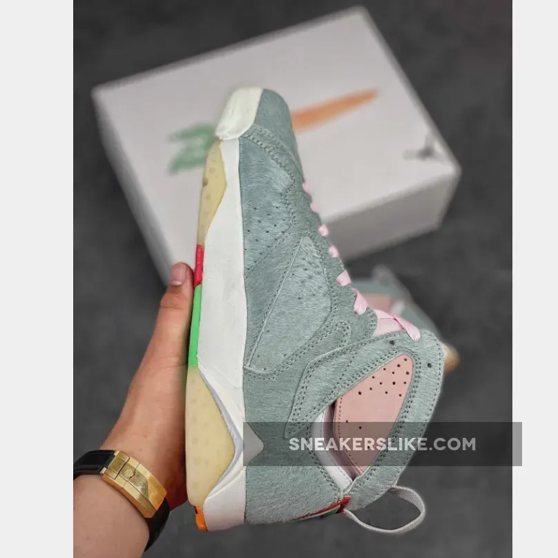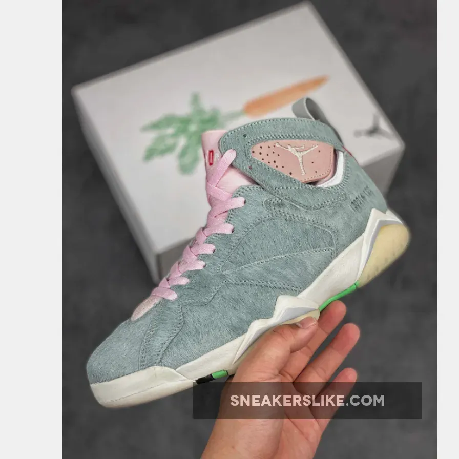 Air Jordan 7 Retro “Neutral Grey” is ?! Loving the furry suede & pastel colorway, perfect nod to Bugs Bunny. Design is classic & comfortable, can’t wait to rock these on court or street ?? #HareJordan #AirJordan #SneakerGame ??