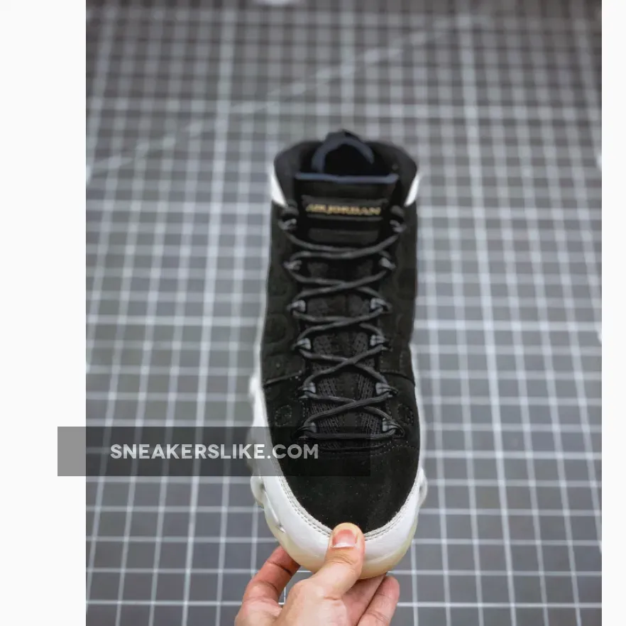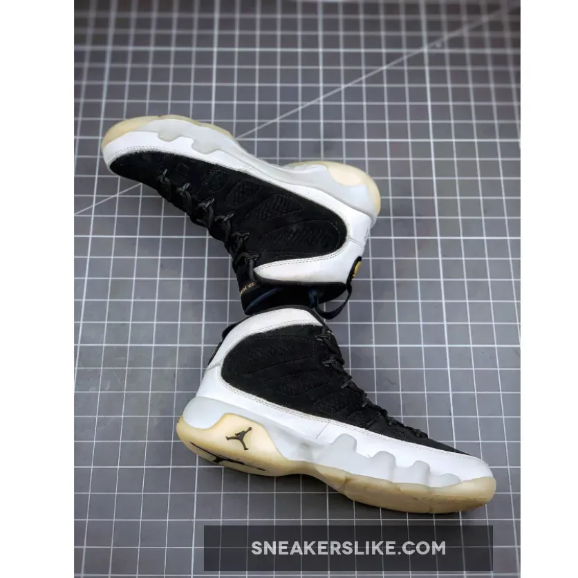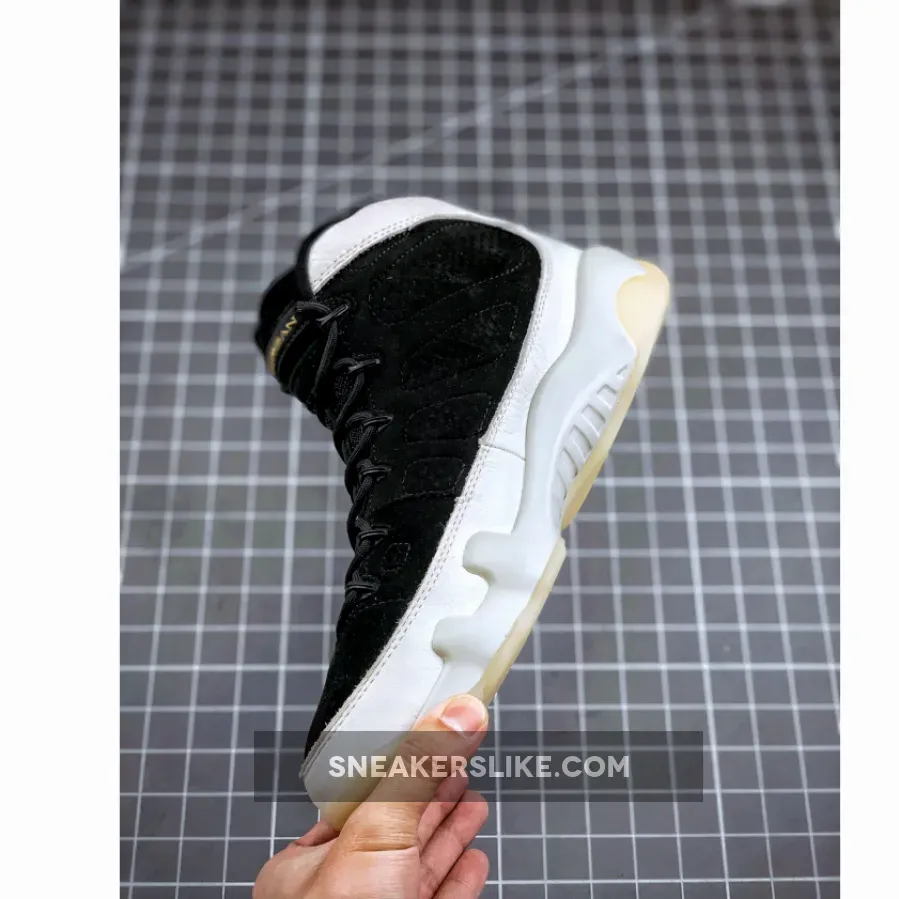 Dressed in a Black, Summit White and Metallic Gold color scheme. This Air Jordan 9 is highlighted with its translucent outsoles and Los Angeles map-inspired graphic insoles.