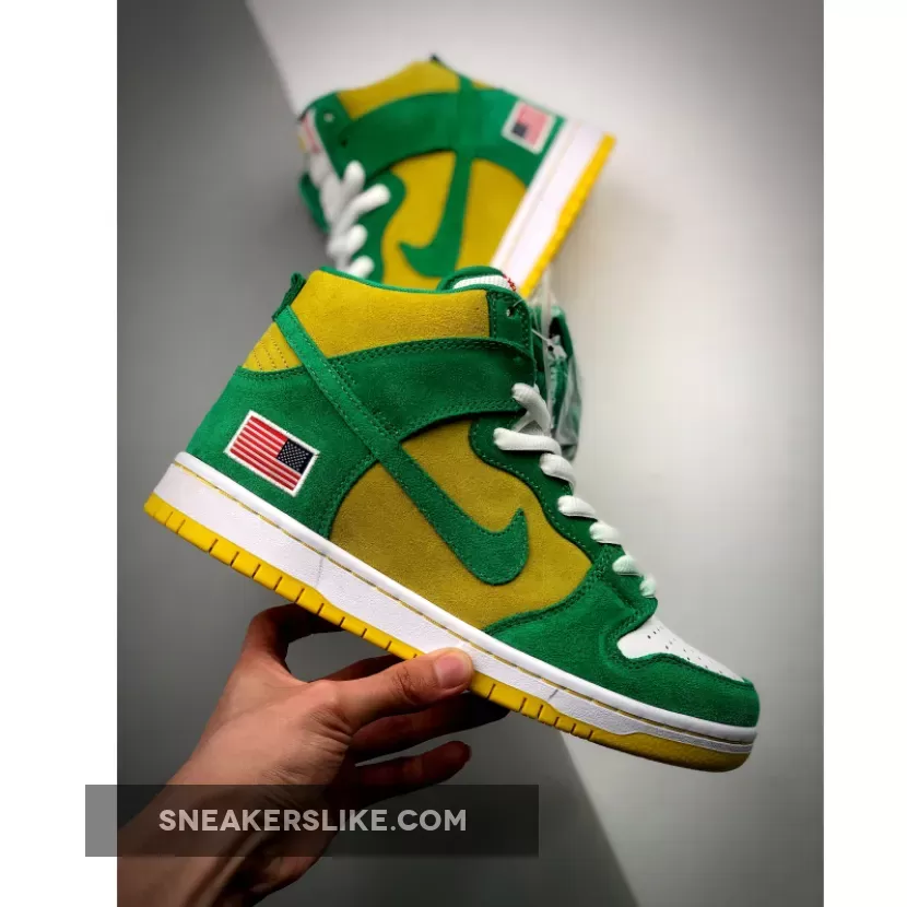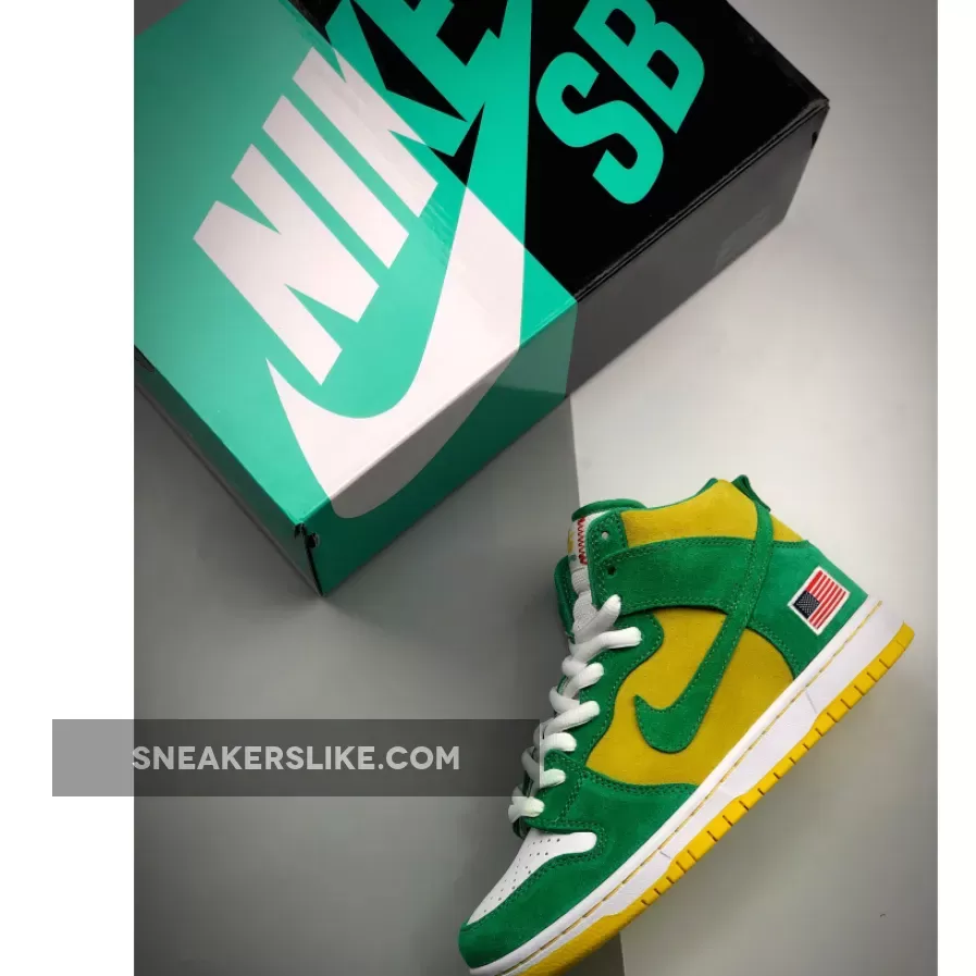 green and yellow dunks high #dunk high pro #oakland to sb #nike sb green and yellow #oakland as shoes