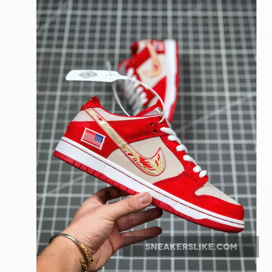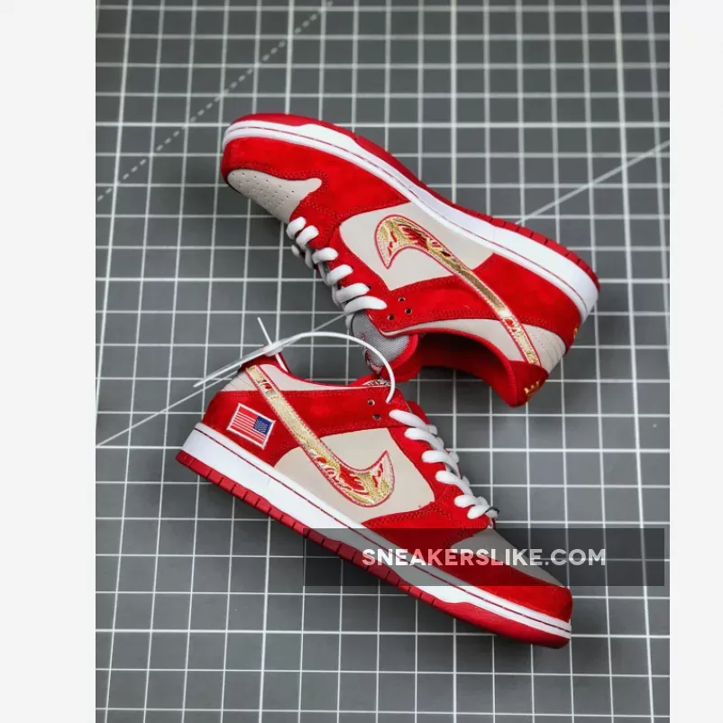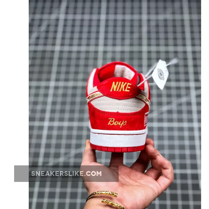 . Gold accents fill in the leather swoosh, Nasty Boys on the heel as well as the Nike branding. Other details include a white midsole, laces, a red cross stitch resembling baseball seams on the tongue and the American Flag by the heel.