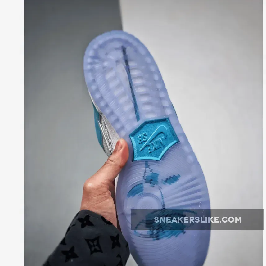 the April Skateboards x Nike SB Dunk Low features a White, Metallic Silver, and Turbo Green color combo as the sneaker starts off with white mesh detailing on the side panels and heels along with tonal leather toes. There is a silver side swoosh as well as the tag and the various “April” brandings. The latter notably reveals the April logo in the form of a rose, a visual already placed on the label’s boards.