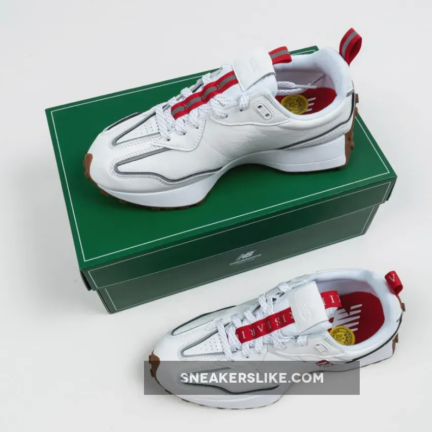 While the colorways are overtly typical in their black and white options, the collaborative 327’s construction is anything but as it forgoes the usual nylon and suede for a full leather make-up. The oversized “N” logos along the side, the toe cap, eye stay, and heel counter are all dressed in a premium grain, the darker of the two pairs the most apparent in this tumbled texture. Red then lays over top on both, bringing attention to the “ARIES” branding down the profile as well as the webbing that stitches along both the tongue and heel. What’s more, the brand has also applied multiple reflective accents to the upper, placing them just along the aforementioned strips as well as the edges of the overlays.