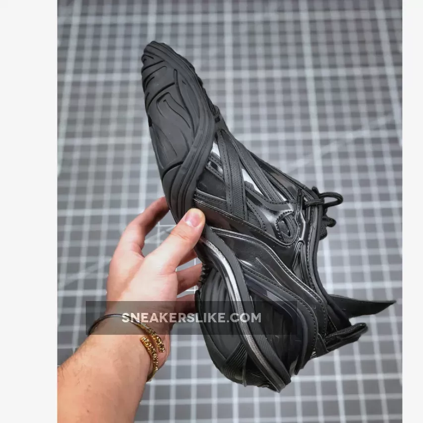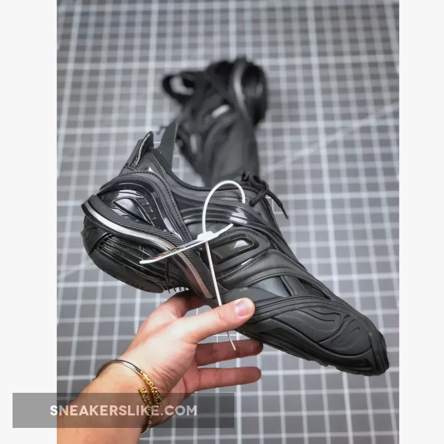 Sleek and stylish, these office-inspired kicks boast innovative rubber soles for traction & comfort. Breathable mesh & textured panels elevate the design, while the pull-on tabs & logo add practicality & elegance. Perfect for any wardrobe! #LuxurySneakers #BalenciagaStyle