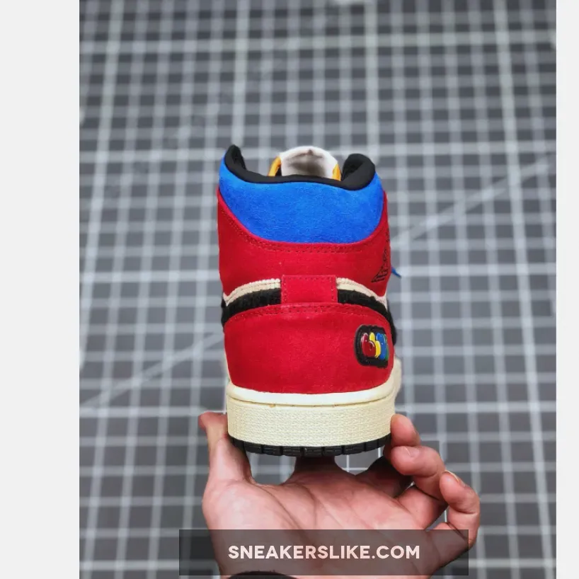 . It’s a special style designed in conjunction with Los Angeles-based artist, Blue The Great and his affinity for primary colors. Styled in a color block theme featuring red, orange, green and blue with contrasting sail and black accents, the mid-top is also composed of suede and corduroy to make up its profile. Finally, Blue The Great’s signature adorns the heel to complete the design.