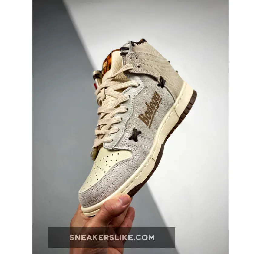 The Bodega x Nike Dunk High Sail is the Swoosh’s latest collaborative work on their fan-favoured Dunk silhouette. Working in partnership with Boston based retailer Bodega, we are now taking a closer look at the collaboration that has been a hot discussion in the sneaker community recently.Arriving in an earthy cream colorway, the pair boasts a soft suede construction throughout while crisp tumbled leather runs along the ankle giving this Dunk’s design a vintage aesthetic look. Exposed stitching that you would have seen before on baseball gloves makes its way across various sides of the shoe in the form of cowhide leather.This pair wouldn’t be complete if we didn’t mention the jewel Swoosh along the lateral side vamped in a tortoiseshell print while the medial side panel flaunts the American boutique’s italicised brand name.The Nike Dunk High Bodega Sail is yet to receive an official release date. However, we do know that these will no doubt be surrounded by a significant level of hype. If you’re looking to get your hands on these, make sure to stay locked in right here for all the latest releases.