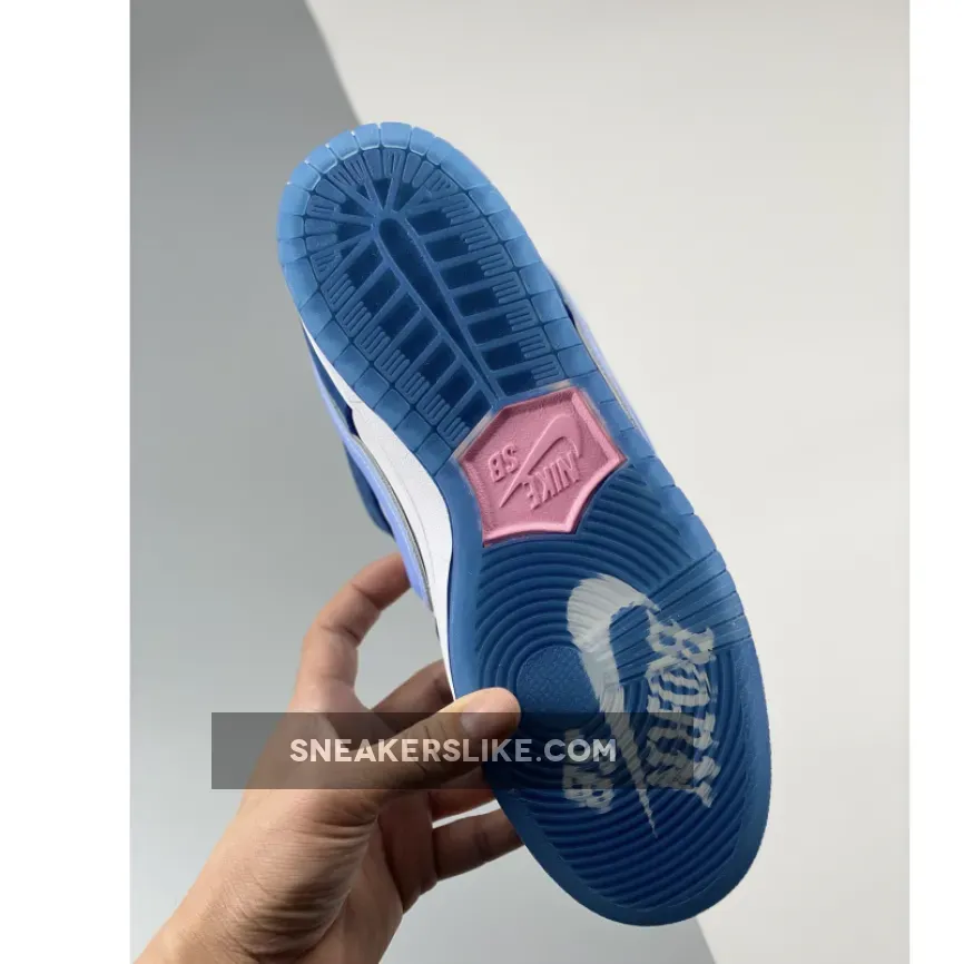 This Born x Raised x Nike SB Dunk Low “In Loving Memory” sports a premium leather base, leather lining, blue nubuck, and iridescent Nike Swoosh. The perforated toe box and eyelets have been updated with cross emblems, a nod to the heavy religious symbolism within the East LA Chicano street style. The “On the Turf” slogan written in the classic Nike font references the cross-over between the 90s skate and gang culture mentality, a lifestyle which for the most part, plays out on the streets. The holographic finish on the Swoosh and heel tab is a unique touch that is rarely seen on Nike products, further adding to the shoe’s distinct storytelling. An embroidered pink emblem sits on the outer heel, inspired by the Low Rider Custom Spray designs that are part of the BxR aesthetic, a look we’ve seen before on the coveted Nike Air Force 1 Low Mr. Cartoon “Blue Tattoo” from 2005. These arrive with a set of spare fat pink laces and white laces that highlight different elements of the upper, helping you make these feel more personal to you.