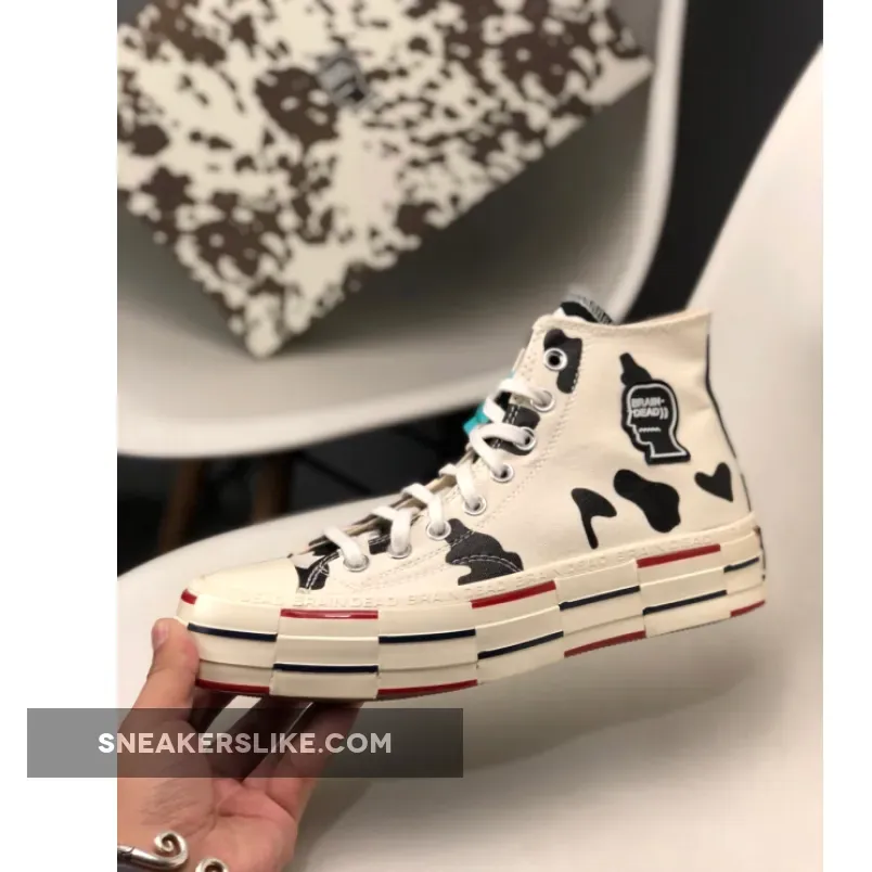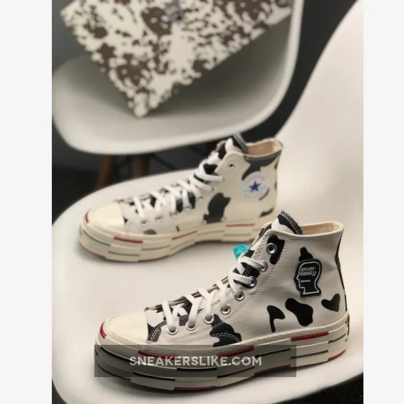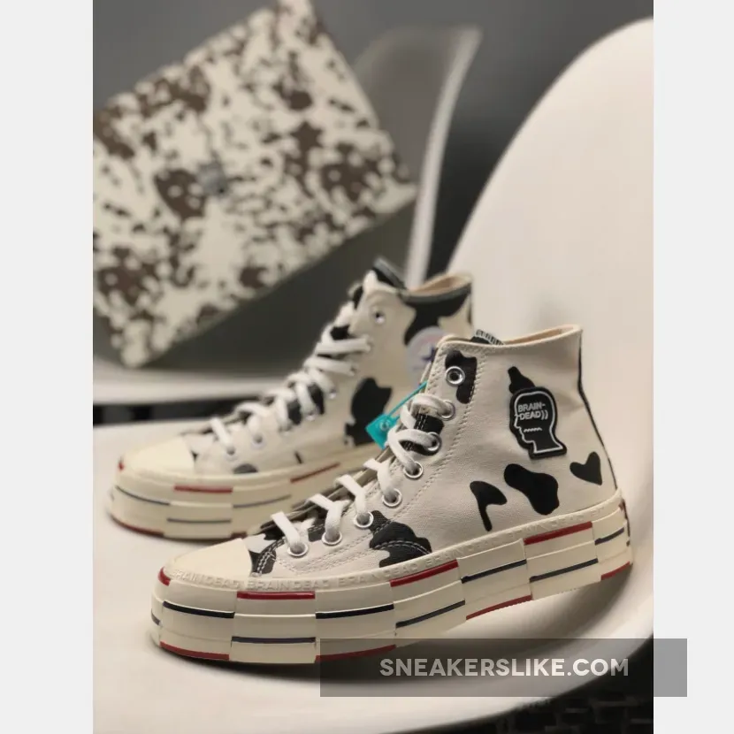 The Brain Dead x Converse Chuck 70 High Egret brown is Converse’s latest addition to their collaboration list with Kyle Ng’s Brain Dead.The LA-based brand returns in time for the festive season to reveal a very contemporary twist to the Chuck Taylor 70s silhouette. The model features 3 primary sections of the shoes each covered with different cow prints on premium canvas material, the lateral side flaunts a classic black and white print while the tongue tab shows a reversed version of that. The medials then unveil contrasting brown and white stripes similar to Holstein cows often seen in Switzerland and Germany.The oversized glossy rubber soles on this model have been deconstructed and reworked with a dash of red and navy blue alternating lines all around, while at the same time, capitalized text that reads “Brain Dead” outlines the midsoles repeatedly. The comfortable OrthoLite insoles that fill this Converse shoes ensures maximum comfort for the wearer while supporting the heightened midsoles to provide more stability is what makes this sneaker completely different to the classic Chuck Taylor All Star.Finalising the duo’s collaborative design is Brain Dead’s signature head logo stamped on a black rubber material on its medial side while Converse’s classic “All Star” logo is patched on the opposite side.Getting your hands on a pair of the Brain Dead x Converse Chuck 70 Bosey Ox on 19 November will be easy if you keep it locked in right here at Our Store Supplier where all the latest releases are happening.