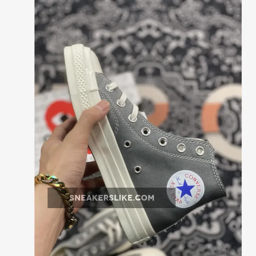 “Love these Chucks! ? Quality is top-notch, canvas is sturdy & breathable. Heart logo adds a cute touch. Comfortable fit, perfect for casual wear. Worth the $130 price tag. Only gripe: laces could be longer. Overall, solid collab between CDG & Converse ?”
