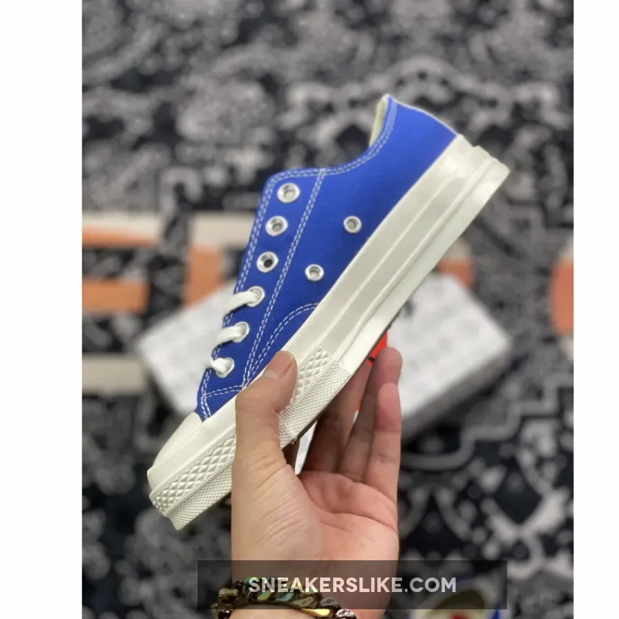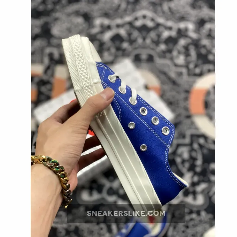 this CDG is what your summer shoedrobe has been waiting for. Much like the OG Converse Chuck Taylor, the upper on this CDG iteration is crafted from canvas that boasts an on-trend denim effect. The instantly recognisable Comme des Garcons love-heart logo sits on the side panel in jet black and another logo sits playfully on the insole. The lace-up fastening lets you customise the fit and the waffle tread delivers optimised grip.