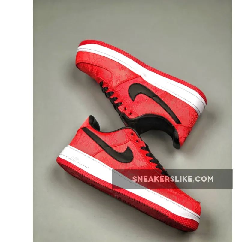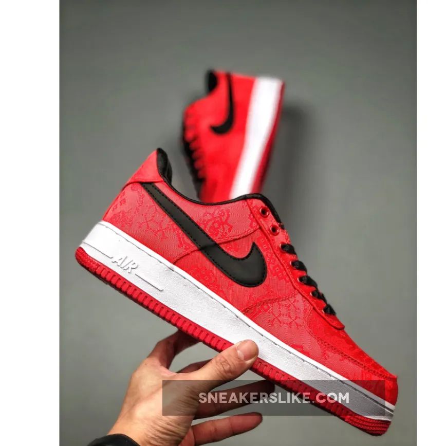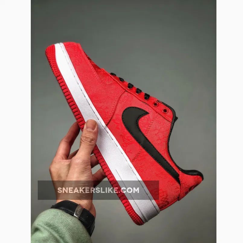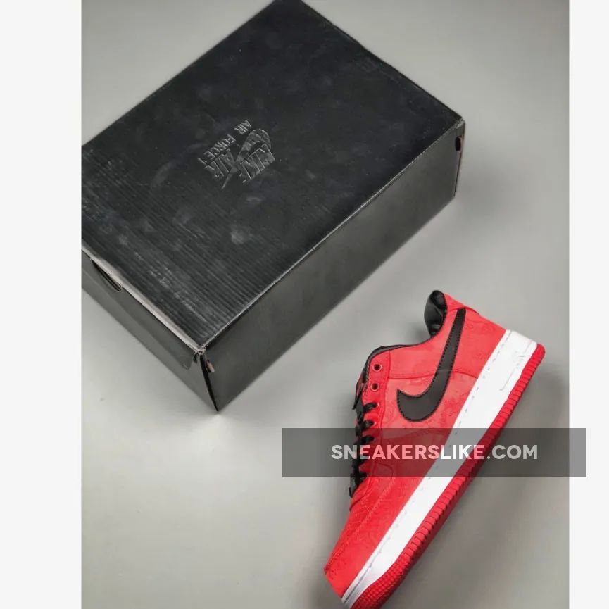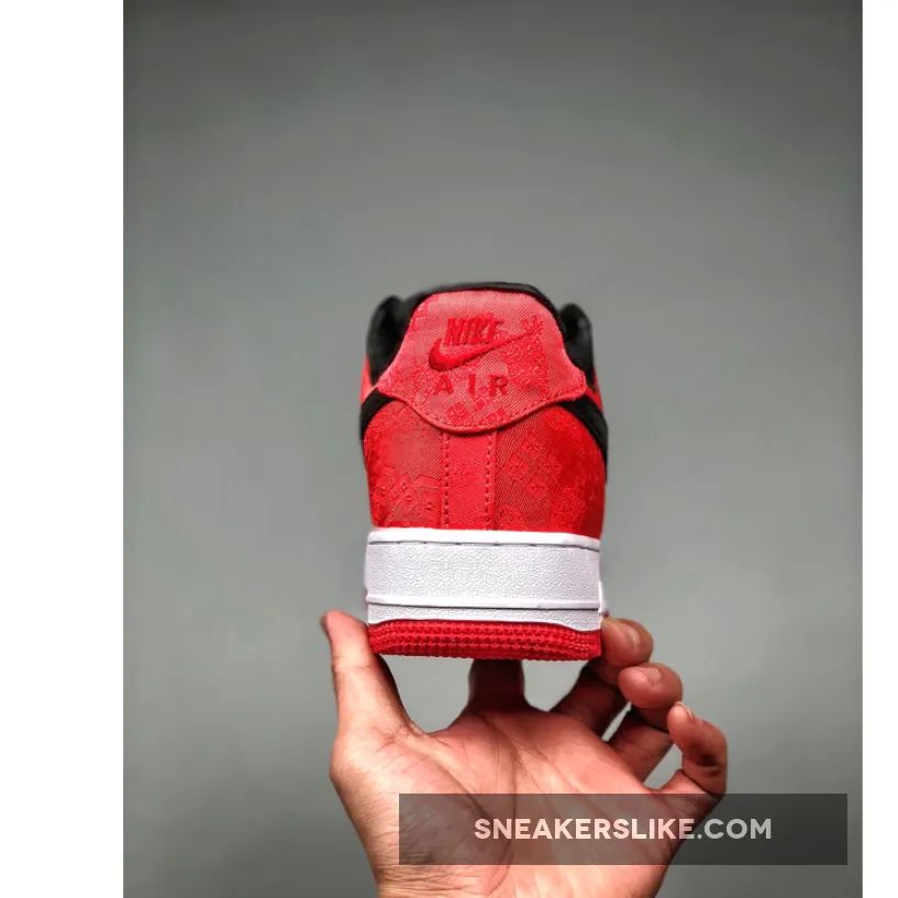 The Nike Clot Air Force 1 comes in a special “Chinese Candy Box” packaging set. Traditionally, Lunar New Year celebrations include offering sweets and other edible treats from a red lacquer box to ensure a “sweet” year. Honoring this custom, the Nike Clot Air Force 1 packaging is a hexagonal red box with a partitioned tray layer, to hold shoe accessories, and matching lid. The box’s exterior is adorned with Clot graphics in black.