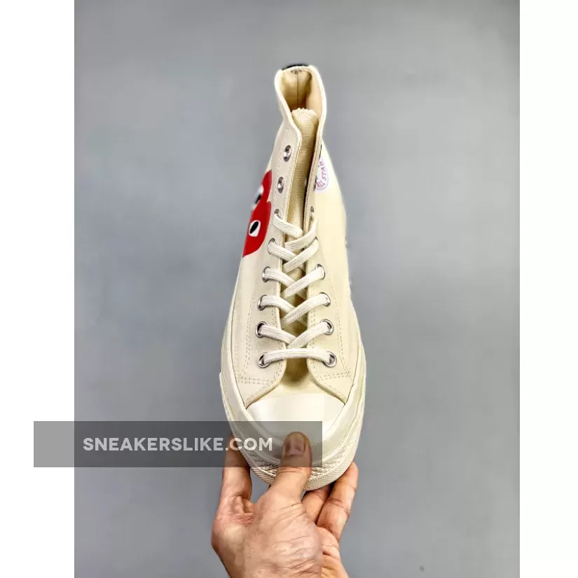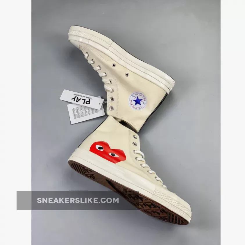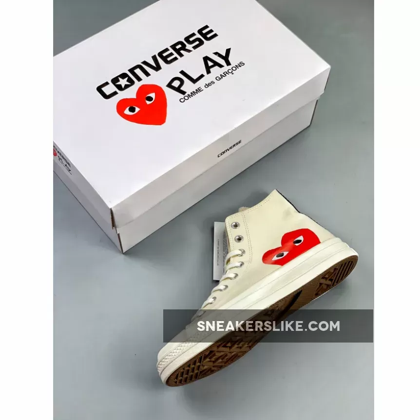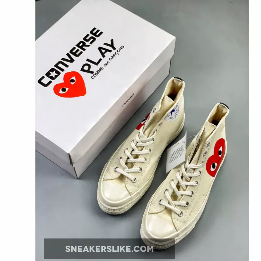 Continuing their successful collaboration, PLAY COMME des GARCONS and Converse will release the Chuck Taylor All Star ’70 this month. Both high top and low top versions of the sneaker will be offered in black and off-white. The heart logo of the brand is now much bigger on the new footwear range, and cut off by the midsole.