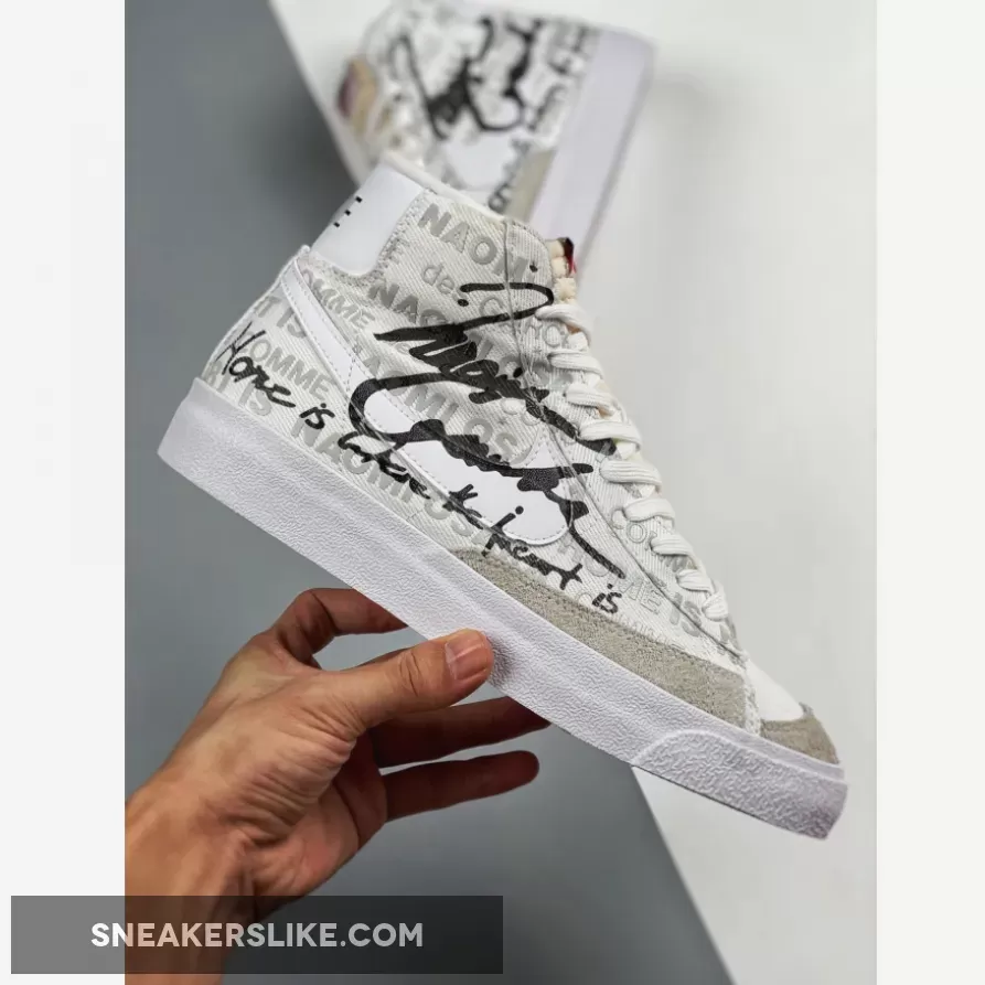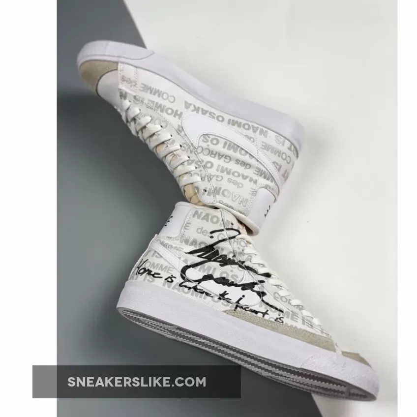 A slight aside to the deconstruction of HOMME PLUS, the Blazer Mid makes use of a base relatively ordinary. The model’s ’77 variant lays as the foundation, featured with a white corduroy that is accented over top by matching leather swooshes and grey suedes. CDG and Osaka then liberally draw atop the entire upper, stamping boldfaced typography of both their names in perpetuity while also penning the athlete’s signature to the profile above a heartfelt message: “Home is where the heart is.”
