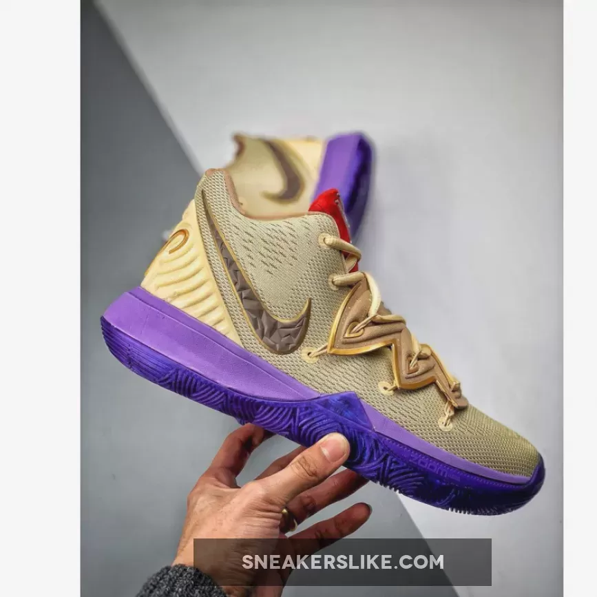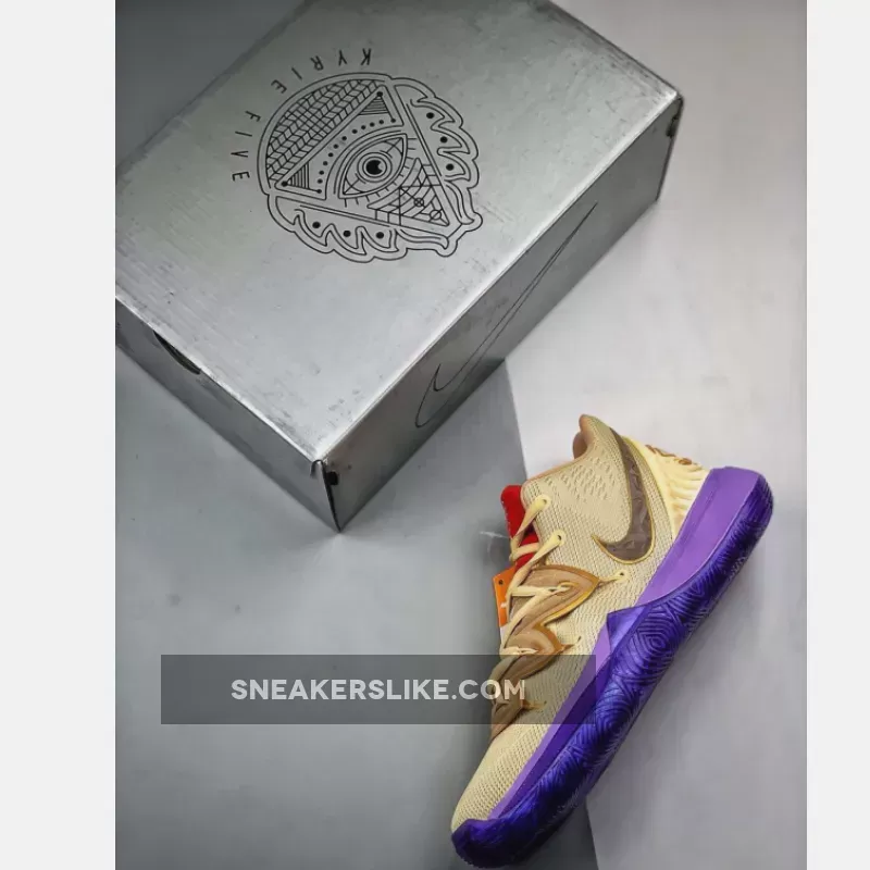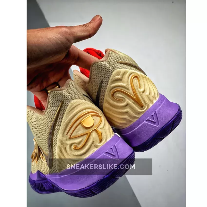 Concepts x Nike Kyrie 5 collaboration snags inspiration from the all-seeing eye in Irving’s hand tattoo and the backstory of Egypt’s ancient pyramids. In addition, a contrasting red tongue pays homage to the Sphinx’s nose prior to its degradation. Subtle branding accents are spread throughout the sneaker such as Concepts’ logo on the right sneaker’s overlay with Kyrie Irving’s signature on the left. Finally, another Concepts hit is found on the left tongue in silver with Kyrie’s signature logo on the right.