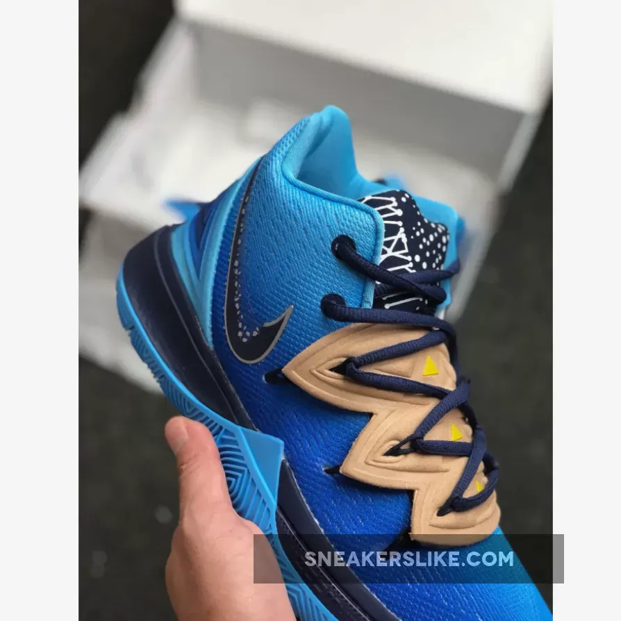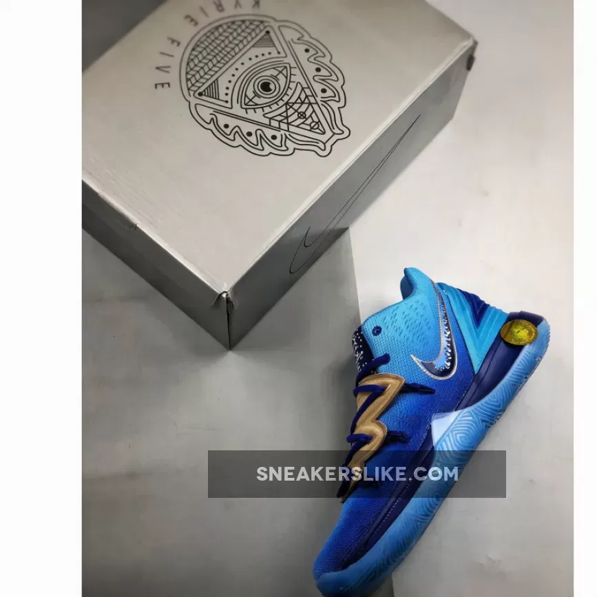 Following their Kyrie 4 “Green Lobster” and Kyrie 5 “Ikhet” in 2018, this Kyrie 5 is the second installment of Egyptian-themed collaborations between the brands, inspired by Irving’s deep fascination with ancient Egyptian culture, the mysterious construction of the pyramids, and their connection to the solar system.