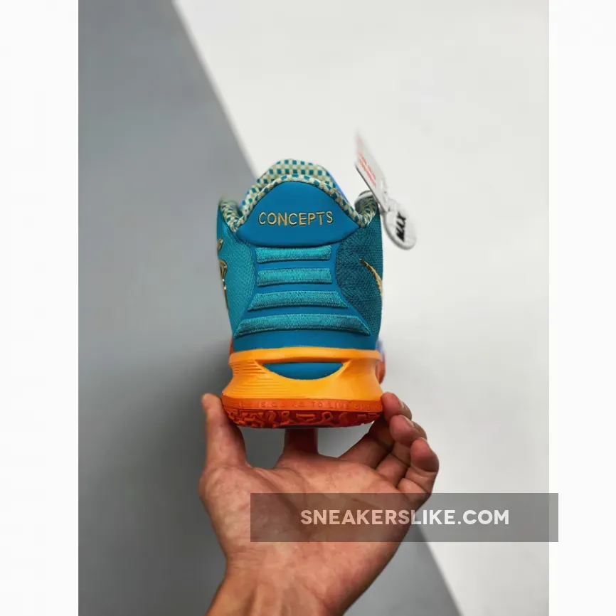 The Nets star guard is notoriously known for his killer instinct, but also deserves credit for having an ever-so growing signature sneaker line. Often found on the feet of hoopers outdoors or in the gym, his seventh signature pair has captured the hearts of many through its strong performance play. In this teal and orange design, Egyptian motifs run across the pair’s mesh upper, while golden Swooshes top off the Concepts’ joint effort.