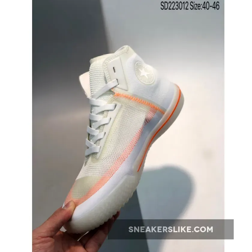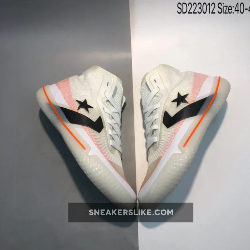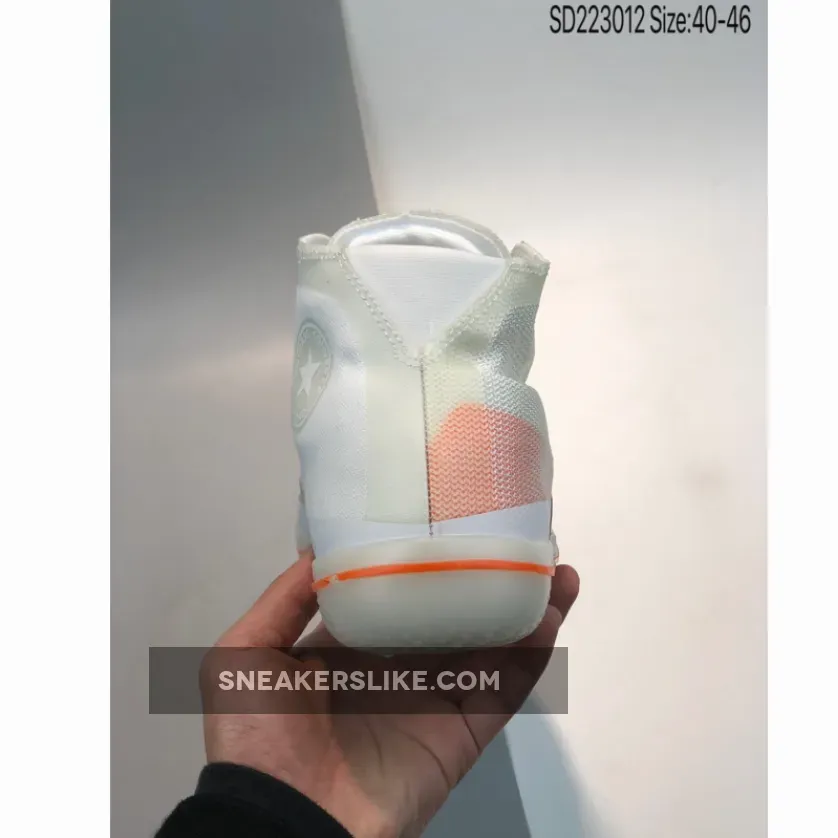 . Although the shoe is chock-full of performance materials, it offers a plentiful helping of heritage as well, combining a tonal Chuck Taylor All-Star patch on the medial ankle, while a chevron logo that any Converse Weapon fan is sure to be familiar with graces the lateral quarter and outsole. So far it’s surfaced in two colors: a black with grey/orange accents, and a white with black/orange pops.
