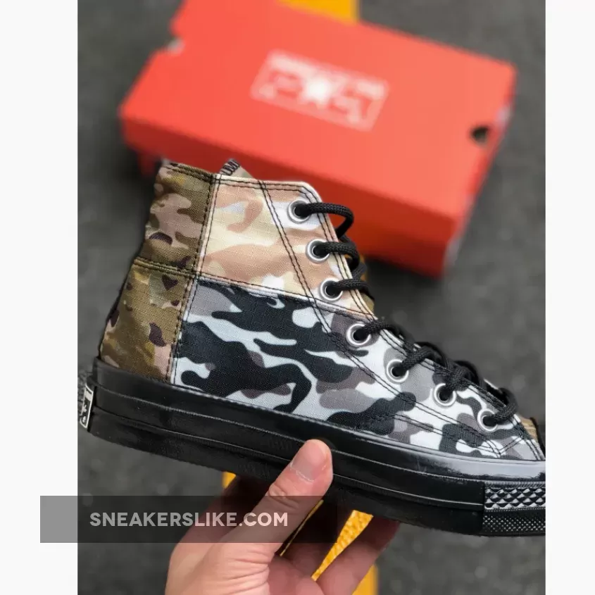 Not all camo is made for blending in. These boldly blocked Chuck 70s mix contrasting camouflage prints for standout style. Ripstop fabric is ultra-durable. Your favorite Chucks, made tougher.