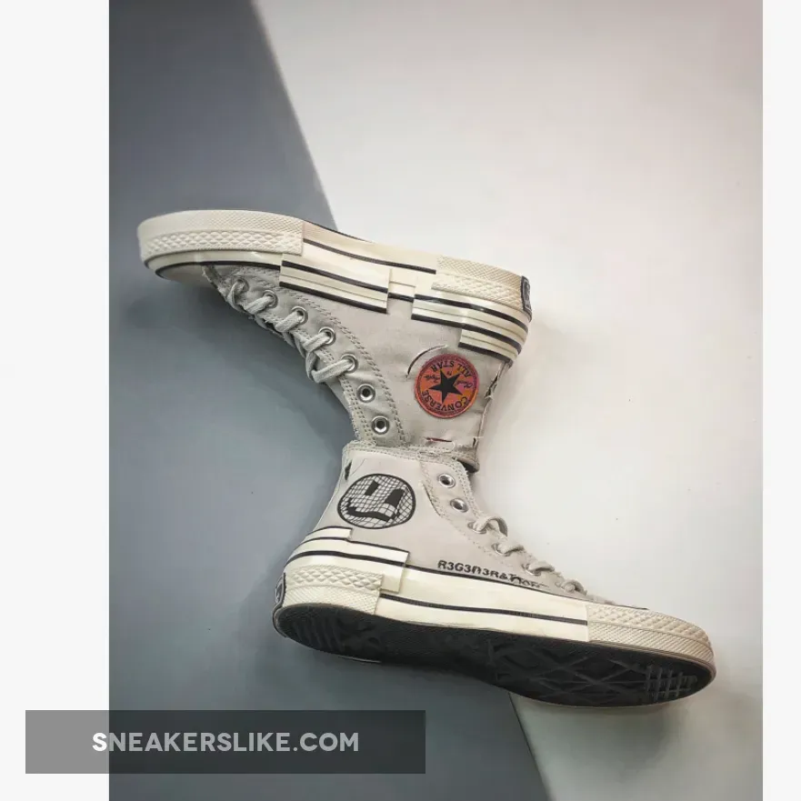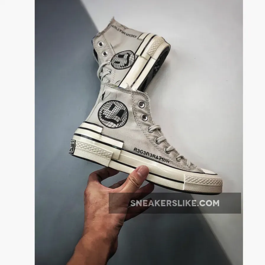 The Chuck 70 Hacked Heel Tear Away Light Bone/Black is a game-changer! The tear-away upper reveals a vibrant print, while the triple-stacked foxing tape adds an edgy touch. The heritage details and premium laces elevate the design. Perfect for those seeking a bold and stylish sneaker with a nod to the ’90s rave culture.
