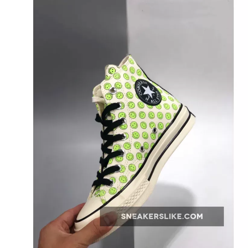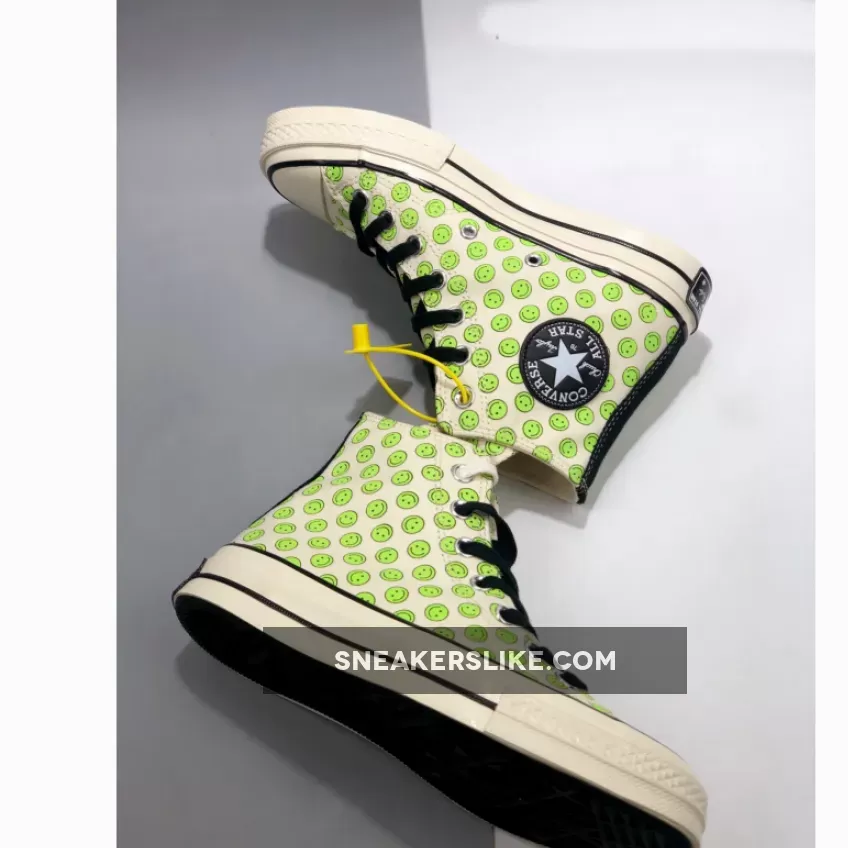 While it’s hard to feel positive with what has been going on this year, Converse is sending nothing but good vibes your way with the Converse Happy Camper Chuck Taylor All-Star 70s Hi Lemongrass. Released as part of their Spring Summer 2020 collection, this is a must have shoe if you are feeling a little under the weather.Crafted from a classic canvas construction, the Happy Camper is painted in a clean “Lemongrass” hue and is peppered with hundreds of tiny happy face emojis throughout for that good energy. Flat black laces literally tie everything together, while the American footwear brand’s signature rubber toe cap is also present for that timeless aesthetic that we all know and love. Down below, you’ll find a fully vulcanised rubber midsole, and to round it all off, the medial side is decorated with the label’s iconic “All Star” patch that’s been kicking about since the ’70s.What is there not to love about the Converse Happy Camper Chuck Taylor All-Star 70s Hi Lemongrass? The perfect addition to any rotation, grab these limited edition trainers right now while your size is still available.