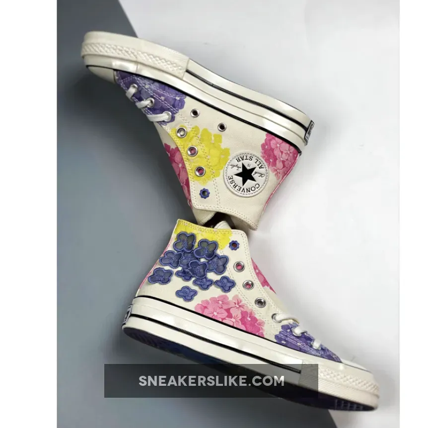 www.sneakerslike.com supply best brand new Converse Chuck 70 High ‘Floral’ Beige/Yellow/Purple Canvas for you, big deal from www.sneakerslike.com.