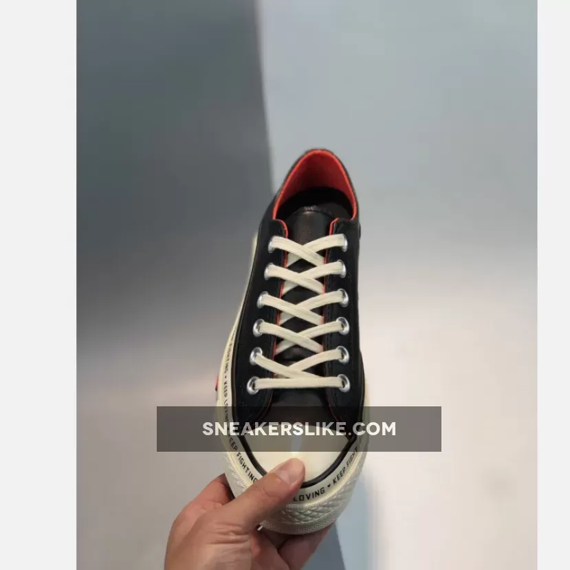 Solid Valentine’s Day vibes! The black leather & bold “KEEP LOVING, KEEP FIGHTING” messaging are striking. The heart-studded outsole & extra laces elevate the design. Perfect for spreading love & style this season.