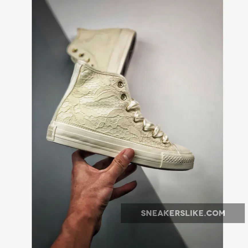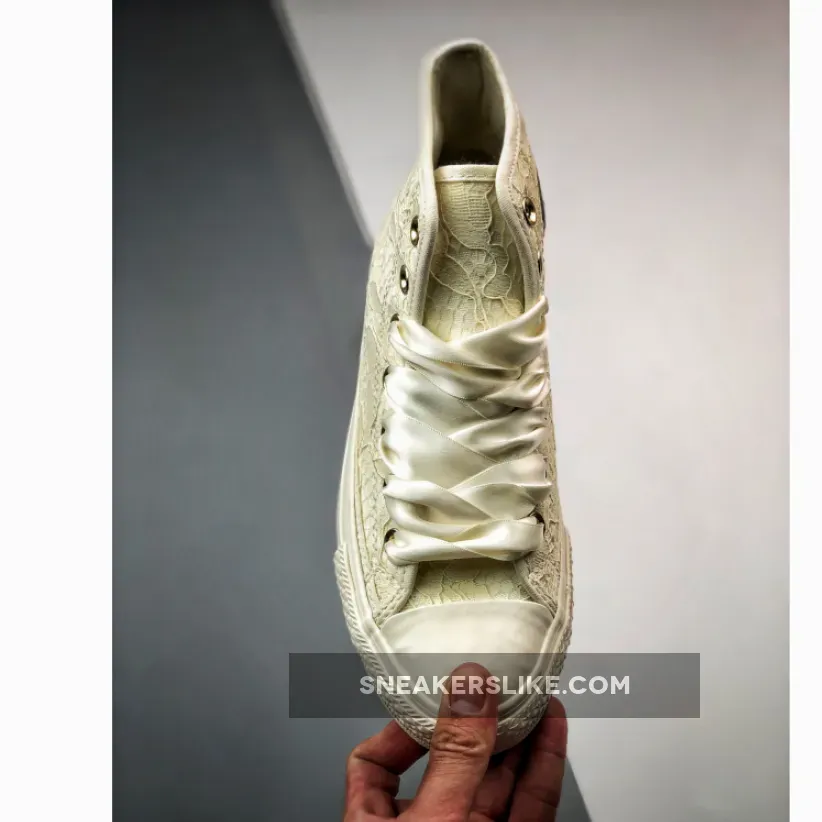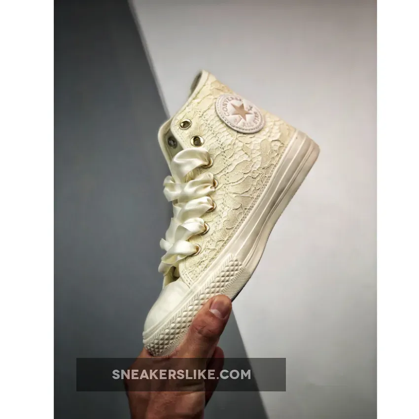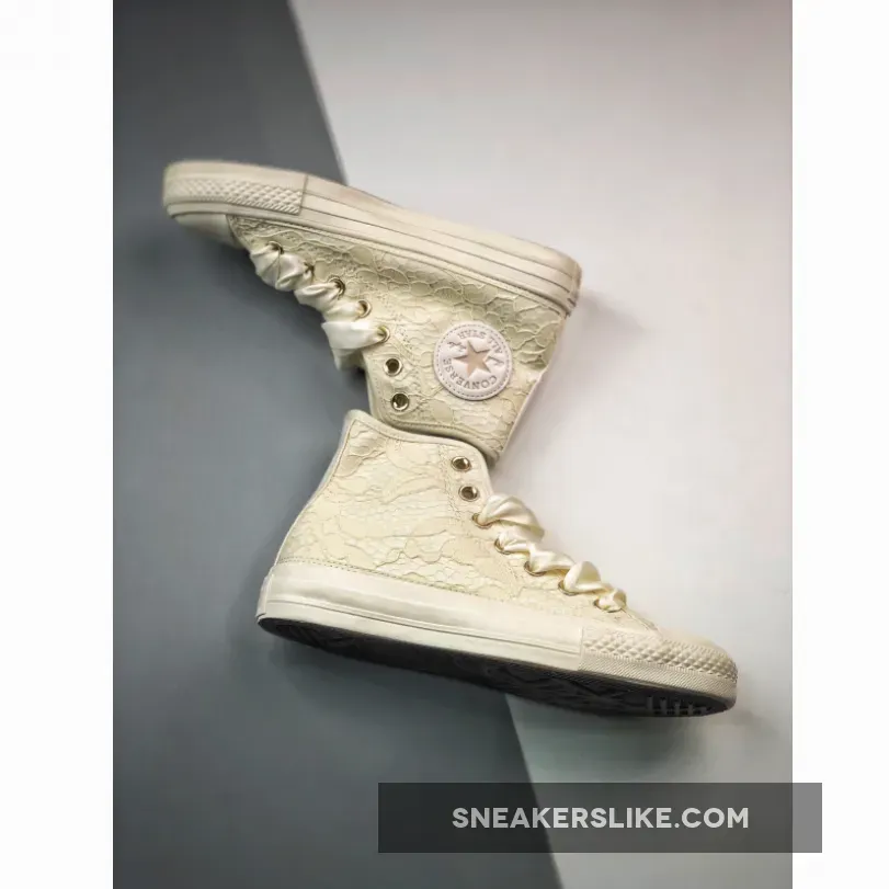 Designed for easy pairing and delicate style, these high-top Chucks are covered in tonal egret lace and finished with shiny gold details. Ready to dress up or down, these lacy Chucks are a must-have for taking your look to the next level.