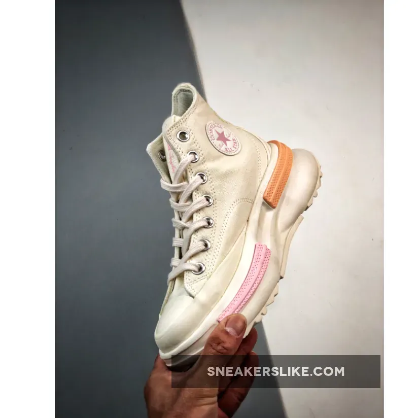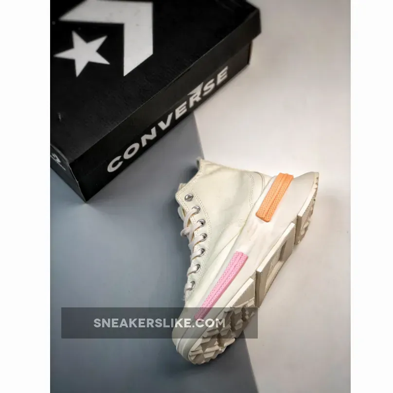 The Converse Run Star Legacy CX Colour Candy Platform High White is an edgy take on the sought-after high-top silhouette. It features classic white cotton-canvas uppers devoid of overt detailing along the outer side to keep things focused on the striking midsole. Hits of candy pink and orange enter via the faceted outsole which has a generously chunky mould. Further traits to note include the signature Chuck Taylor patches on the inner side and the star detailing on the heel. Finally, the CX foam and sockliner ensure day-long comfort.