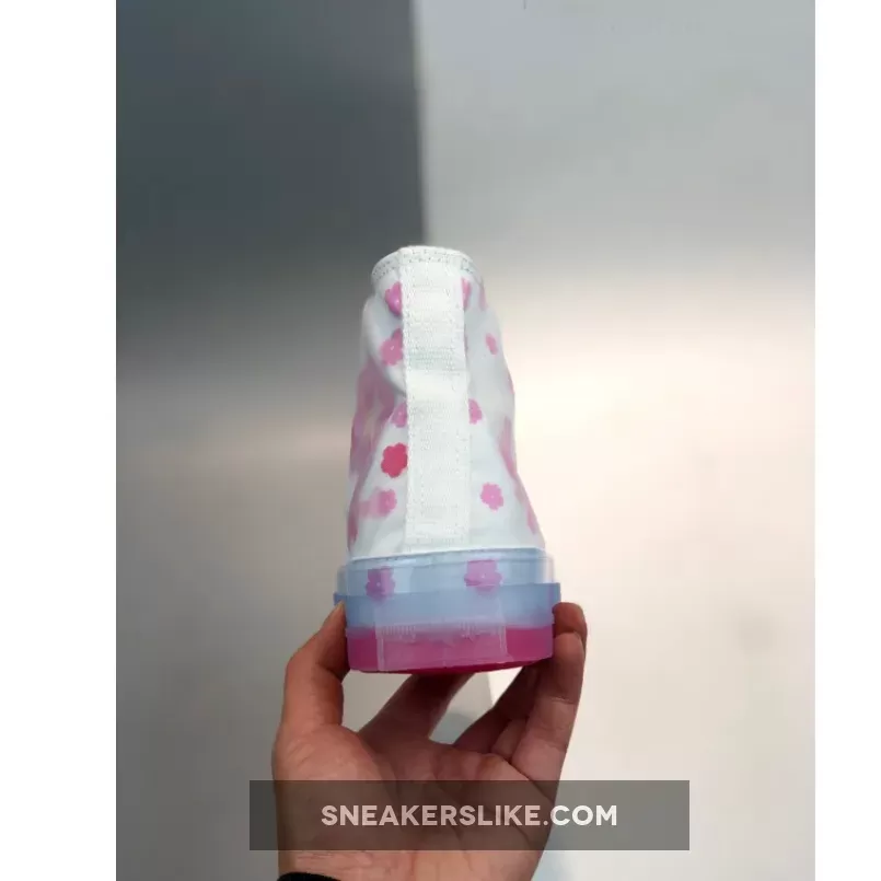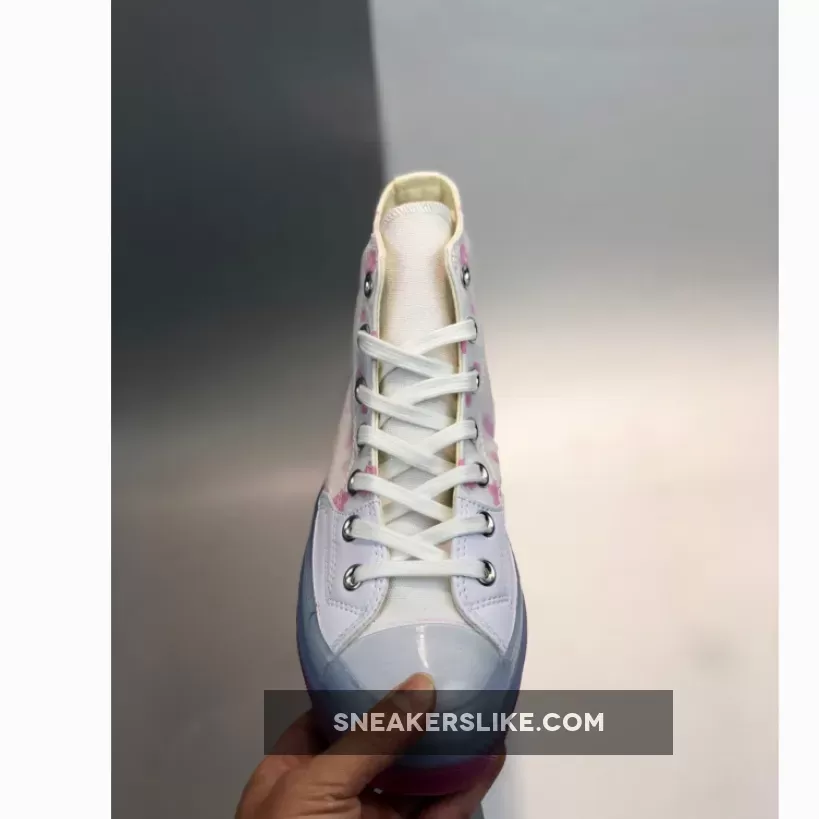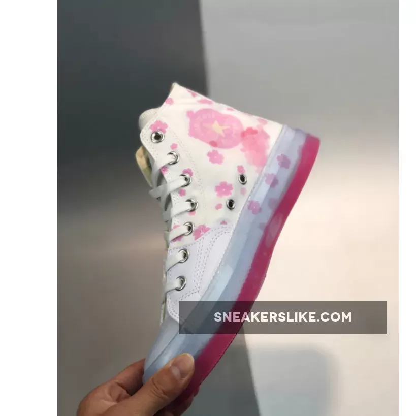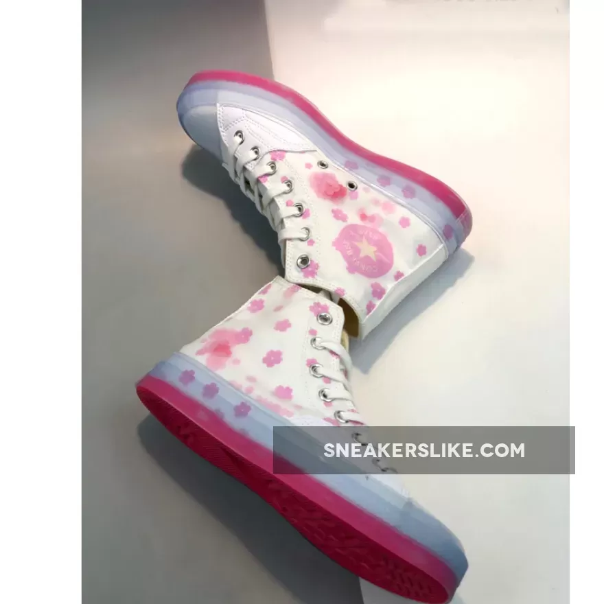 READY TO BLOSSOM. Spring is a time for new beginnings (and new sneakers), like these comfy Chuck 70 sneakers. Cherry blossom prints symbolize renewal, while translucent organza and rubber add a premium touch to any outfit. Encased 3D flowers and pink color-popped outsoles complete the look in never-before-seen style.