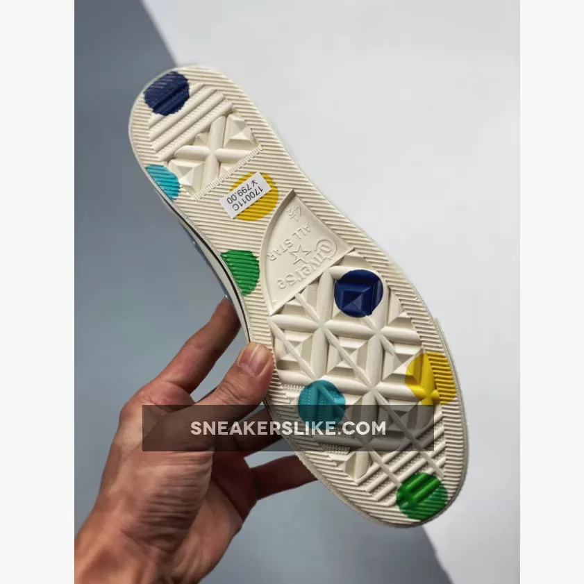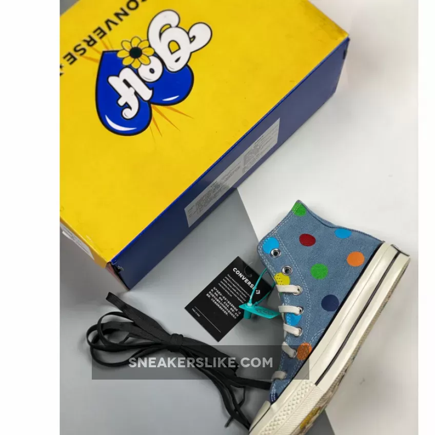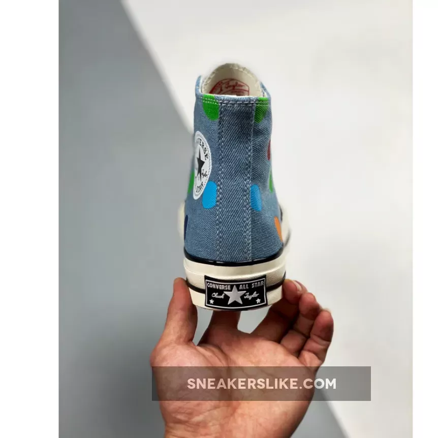 Premium craftsmanship meets quirky design on a bold new Chuck 70 from GOLF WANG.The design comes straight out of the GOLF WANG archives, reviving an iconic pattern that was featured in their first runway show back in 2016. On these new limited-edition Chucks, the funky archival print and unique denim construction brings GOLF WANG’s signature style to the elevated comfort and durability of the Chuck 70.