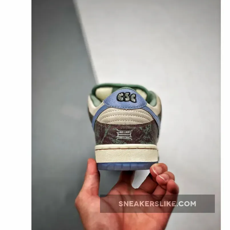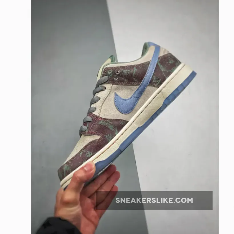 we can see the upcoming Crenshaw Skate Club x Nike SB Dunk Low boasts a clean design made from smooth suede and leather overlays featuring Purple/Seafoam print.