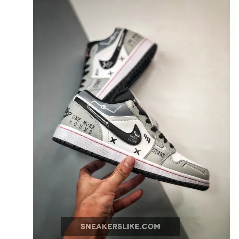 Find Quality Custom Air Jordan 1 Low White Grey Black Outlet and more on www.sneakerslike.com.