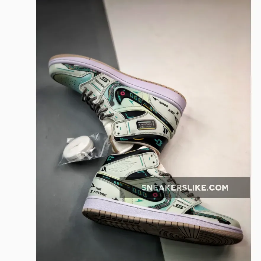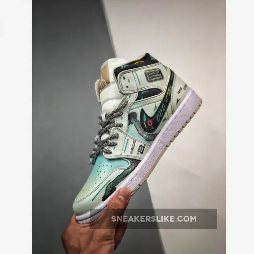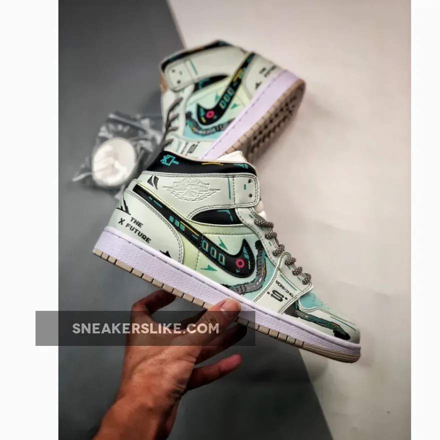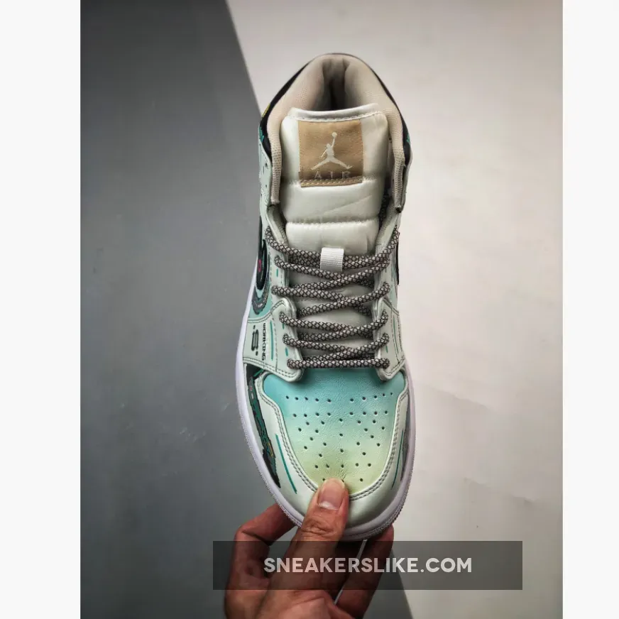 www.sneakerslike.com supply best brand new Custom Air Jordan 1 Mid Green Linen Black Brand New for you, big deal from www.sneakerslike.com.