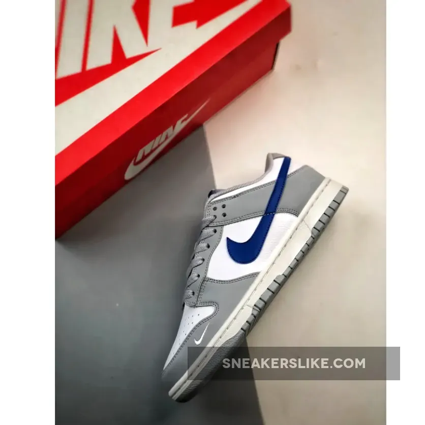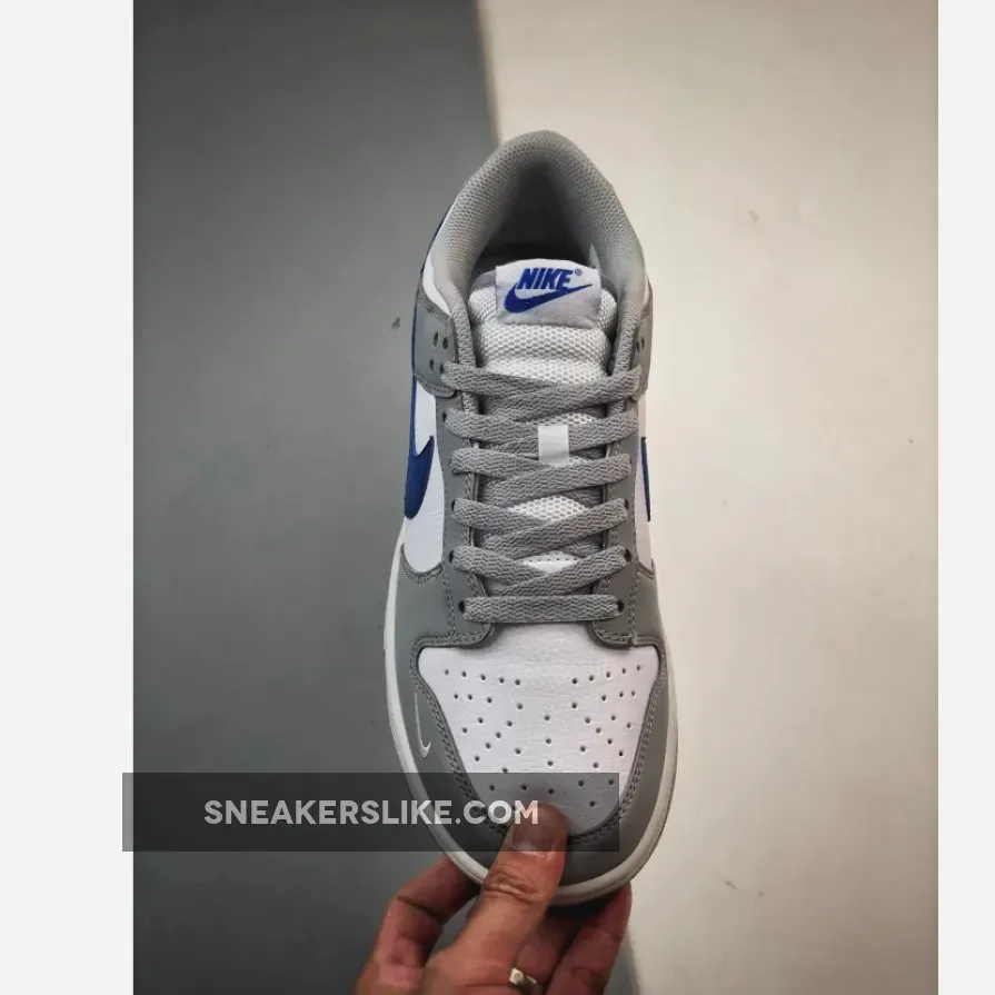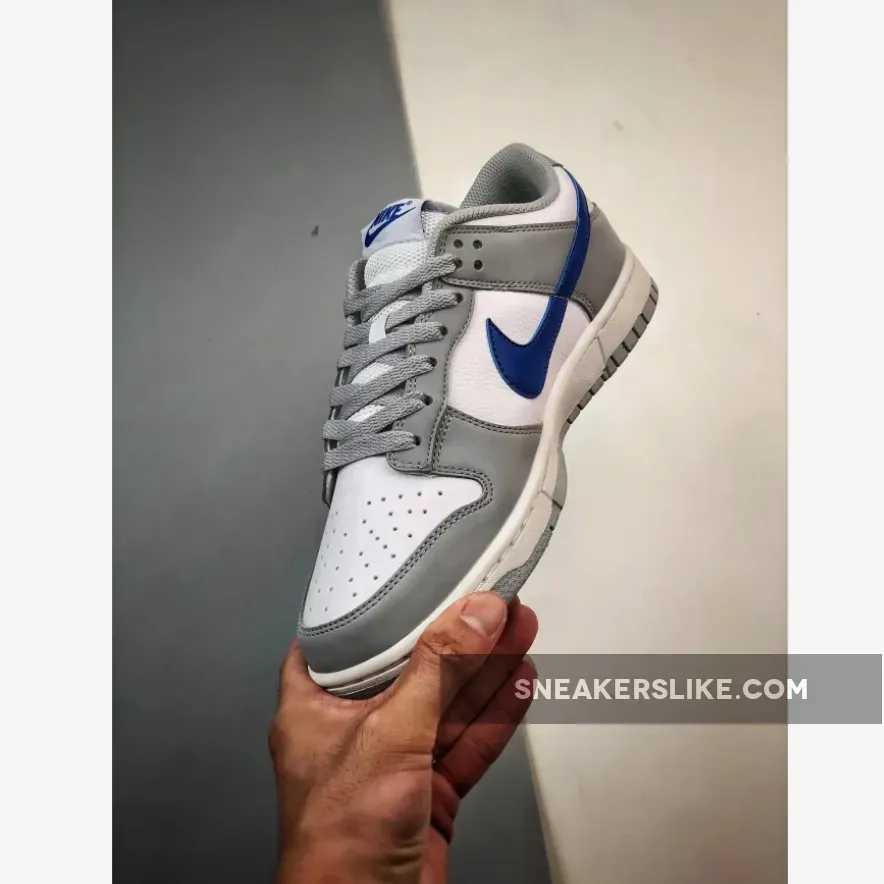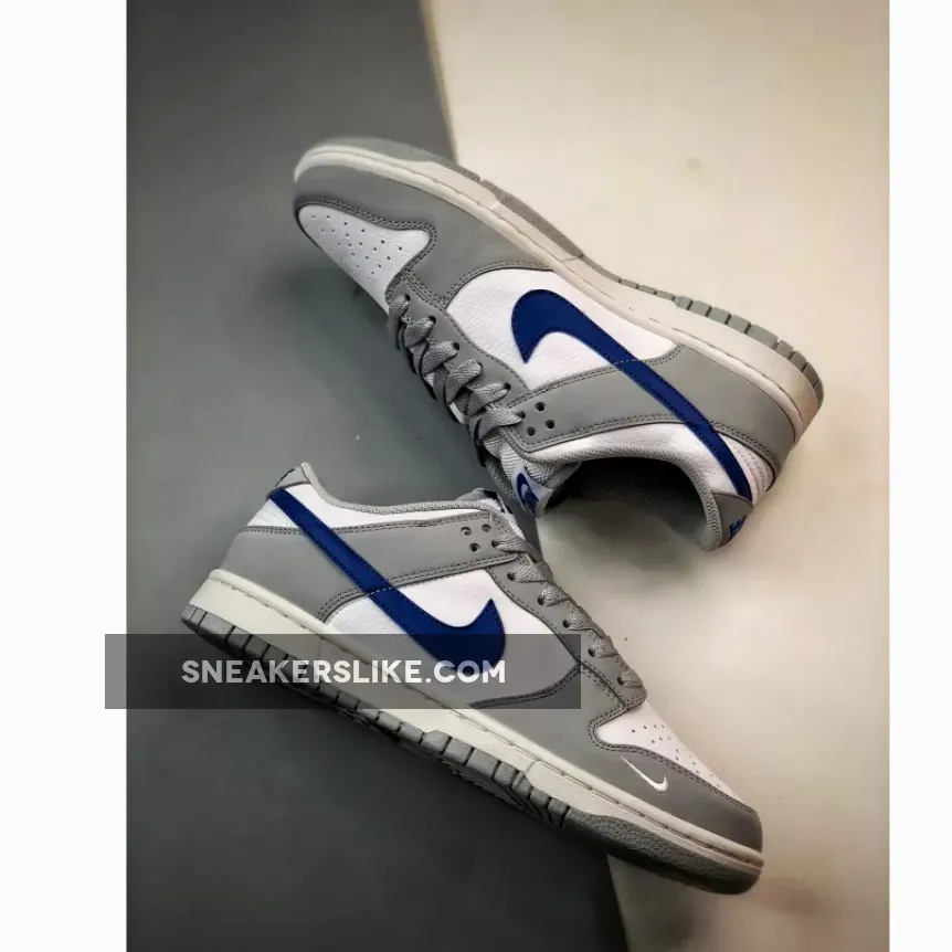Once a basketball shoe, the Nike Dunk has spent the last few decades crossing over from hardwood courts to skateparks and city streets. Take a closer look at the Nike Dunk Low GS Grey Game Royal. This smaller-sized low-cut Dunk starts out with a pristine white pebbled leather base and smooth leather overlays on the toe cap, the mudguard, the eye stay panel, heel tabs and foxing in Grey. The signature profile Swooshes that sweep across both the medial and lateral mid-panels are in striking Game Royal blue. The Nike branding on the white tongue tabs and the embroidered Nike text branding on the heel tabs also follow suit. A plain white midsole and a light Grey rubber outsole round out the design of these kicks. Catch the Nike Dunk Low GS Grey Game Royal on The Sole Supplier app and never miss the latest Nike release dates!