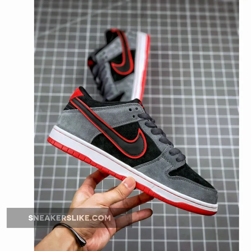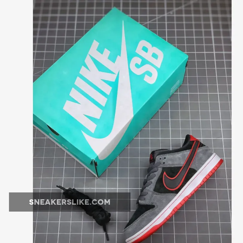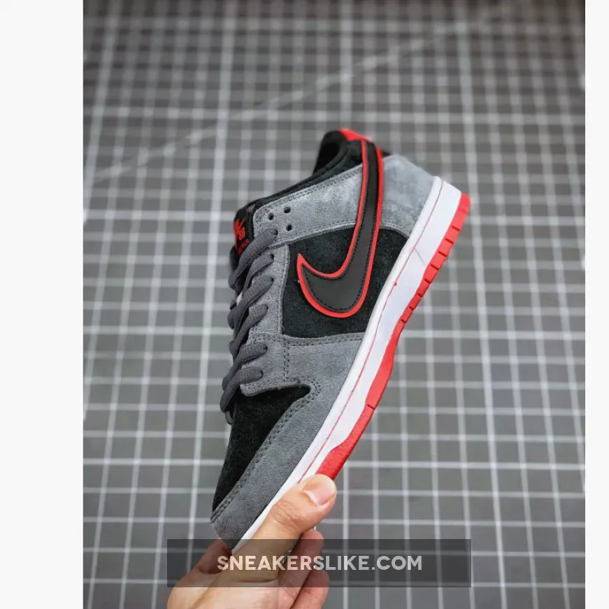 The thinned-down Dunk Low Pro built to the former Skater of the Year’s standards features black and grey suede upper with red outlines on the double Swooshes and a matching translucent red outsole, all completed with some special sports car inspired graphics
