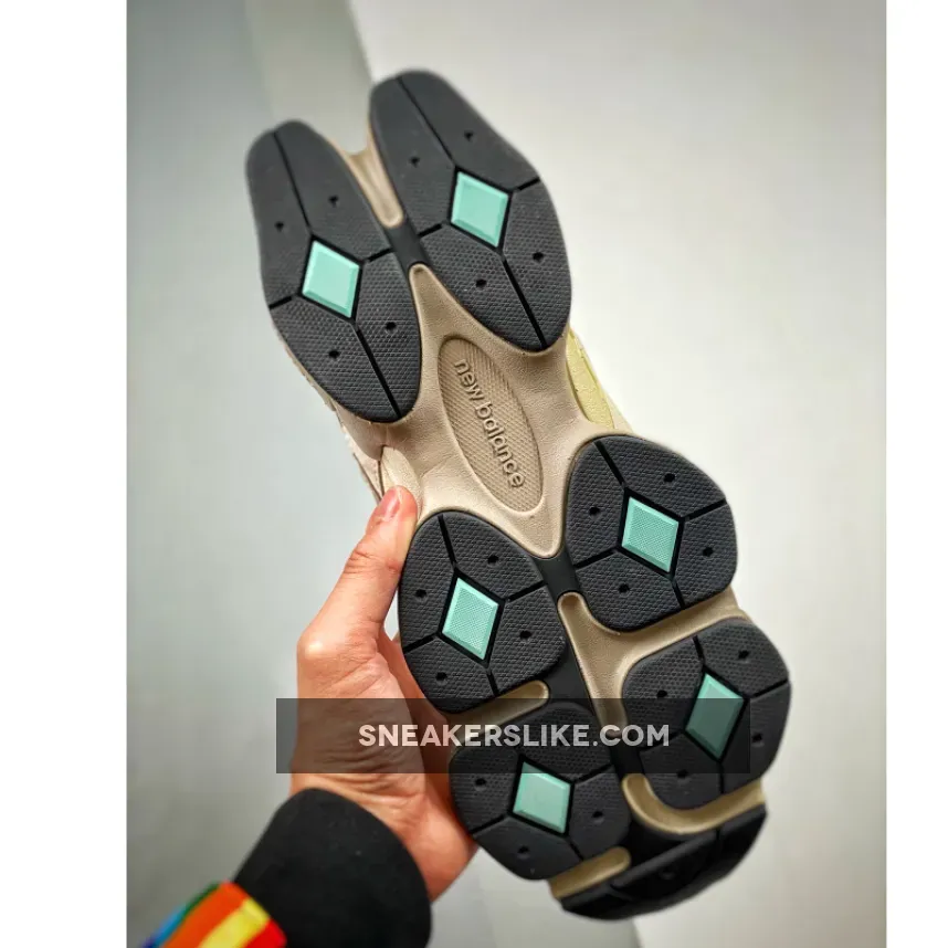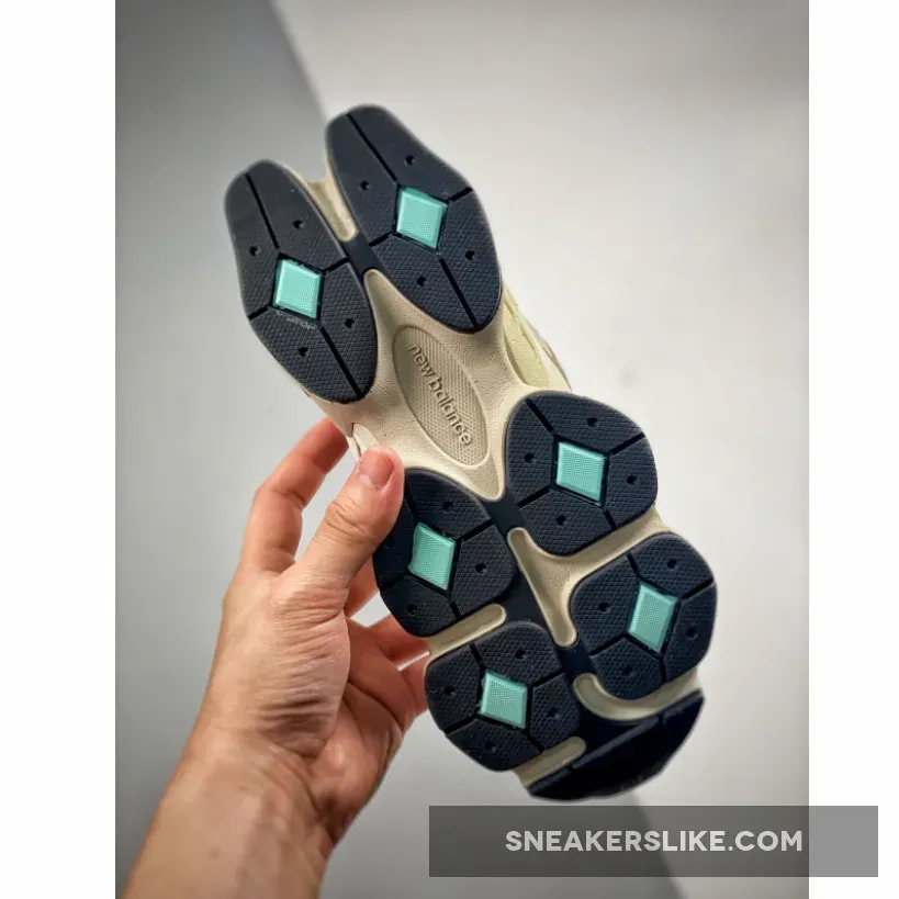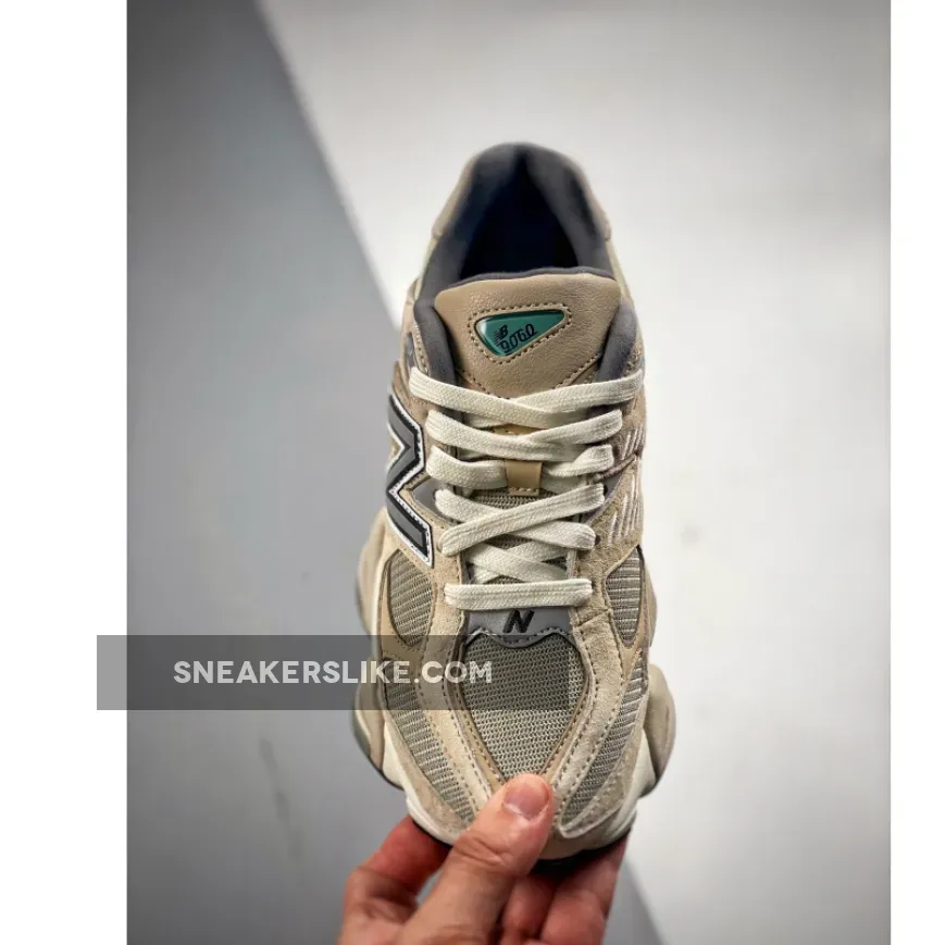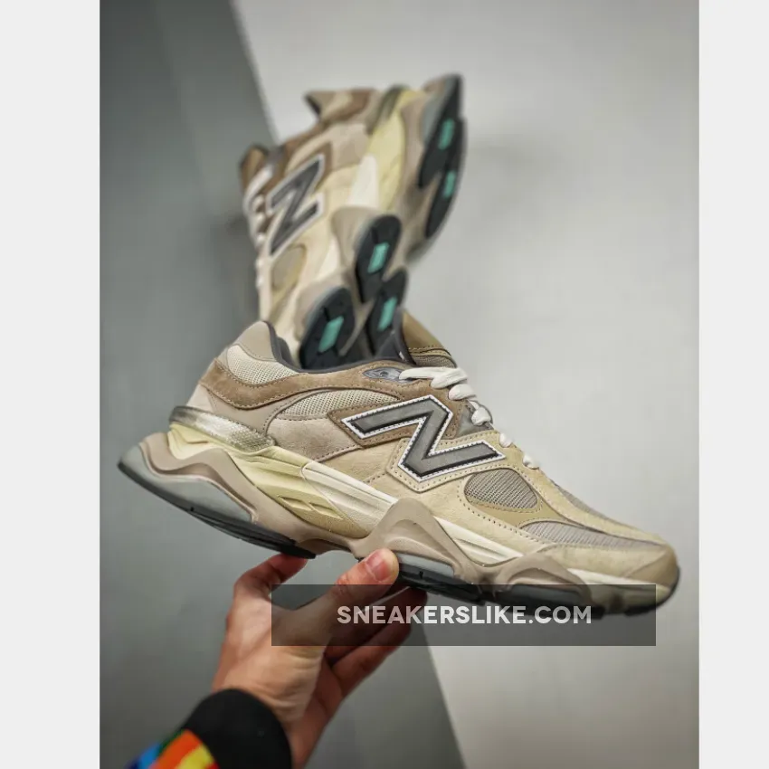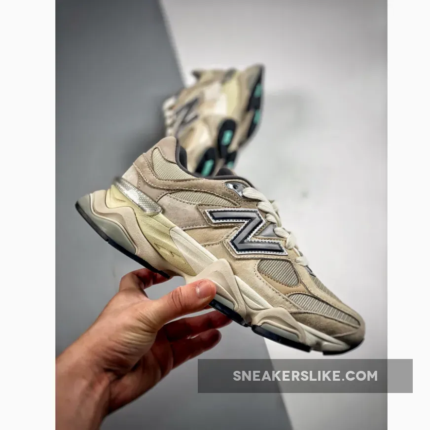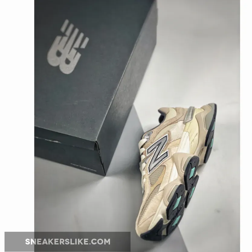 The relatively young New Balance silhouette, the 9060, a combination of the 990 and the 860, has just released a new variant in an appealing neutral and earth-toned colourway. Take a closer look at the New Balance 9060 Sea Salt Surf. The base of this NB 9060 is a mesh material in the titular bone-coloured Sea Salt. The suede accents in Sea Salt and the light brown Surf shade leave diamond and oval-shaped windows all over the shoe. Teal NB 9060 branding adds a pop of colour on the tongue tab. The signature “N” logos on both sides of the shoe are grey outlined with both black and white.