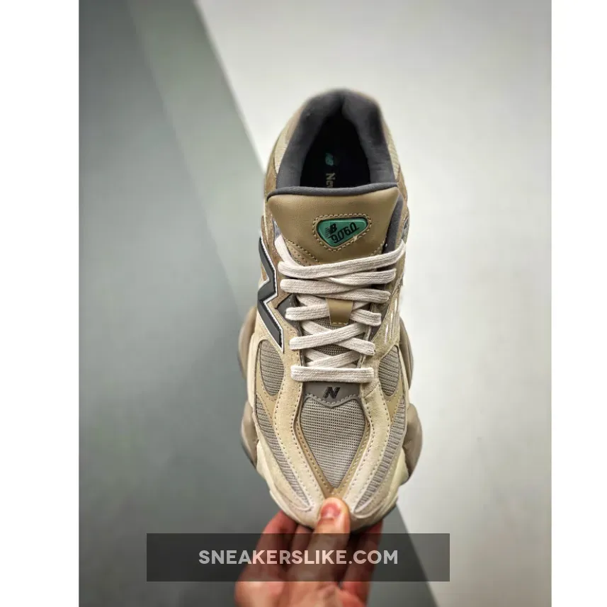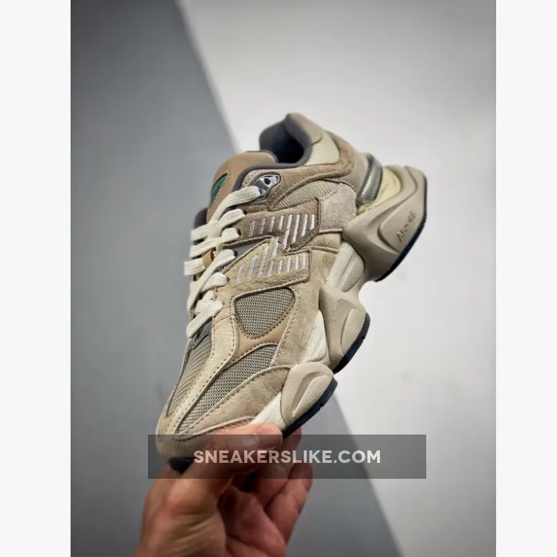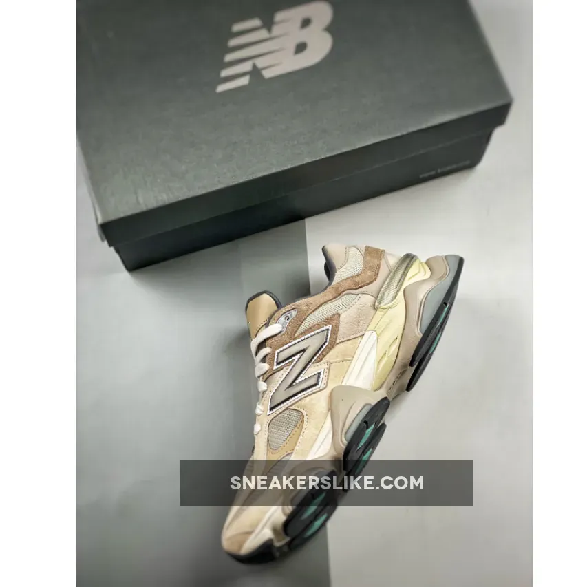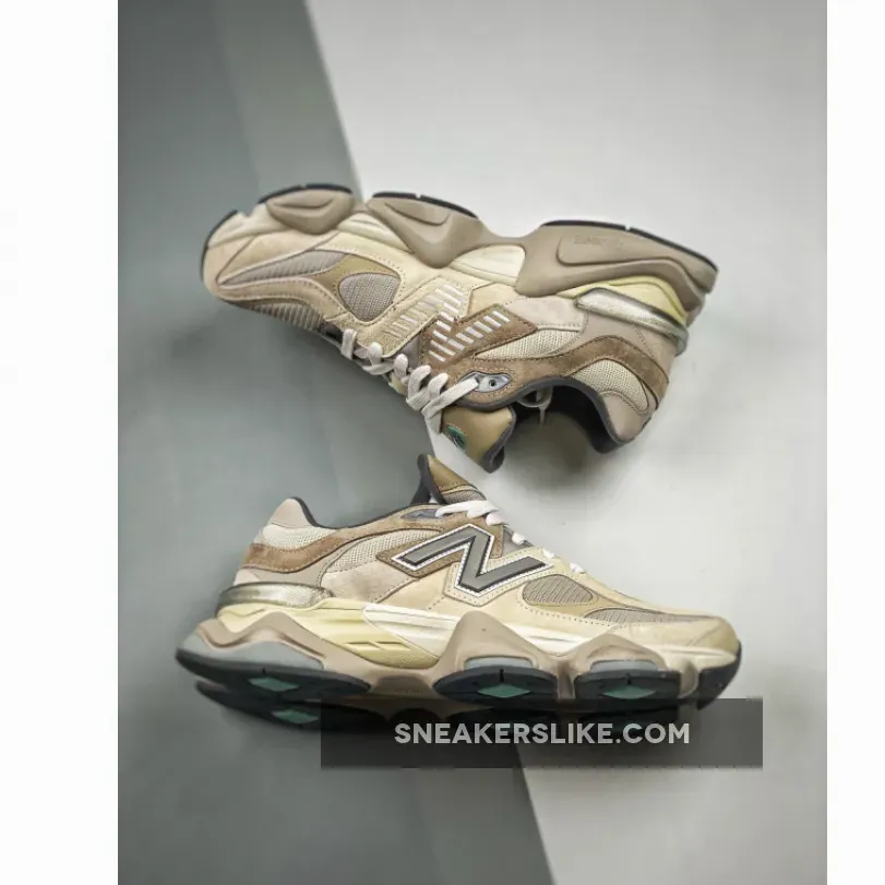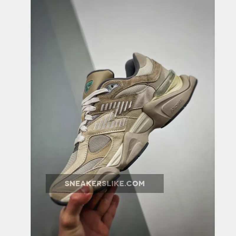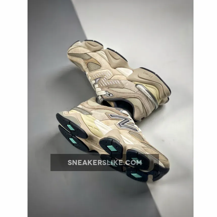 The relatively young New Balance silhouette, the 9060, a combination of the 990 and the 860, has just released a new variant in an appealing neutral and earth-toned colourway. Take a closer look at the New Balance 9060 Sea Salt Surf. The base of this NB 9060 is a mesh material in the titular bone-coloured Sea Salt. The suede accents in Sea Salt and the light brown Surf shade leave diamond and oval-shaped windows all over the shoe. Teal NB 9060 branding adds a pop of colour on the tongue tab. The signature “N” logos on both sides of the shoe are grey outlined with both black and white.