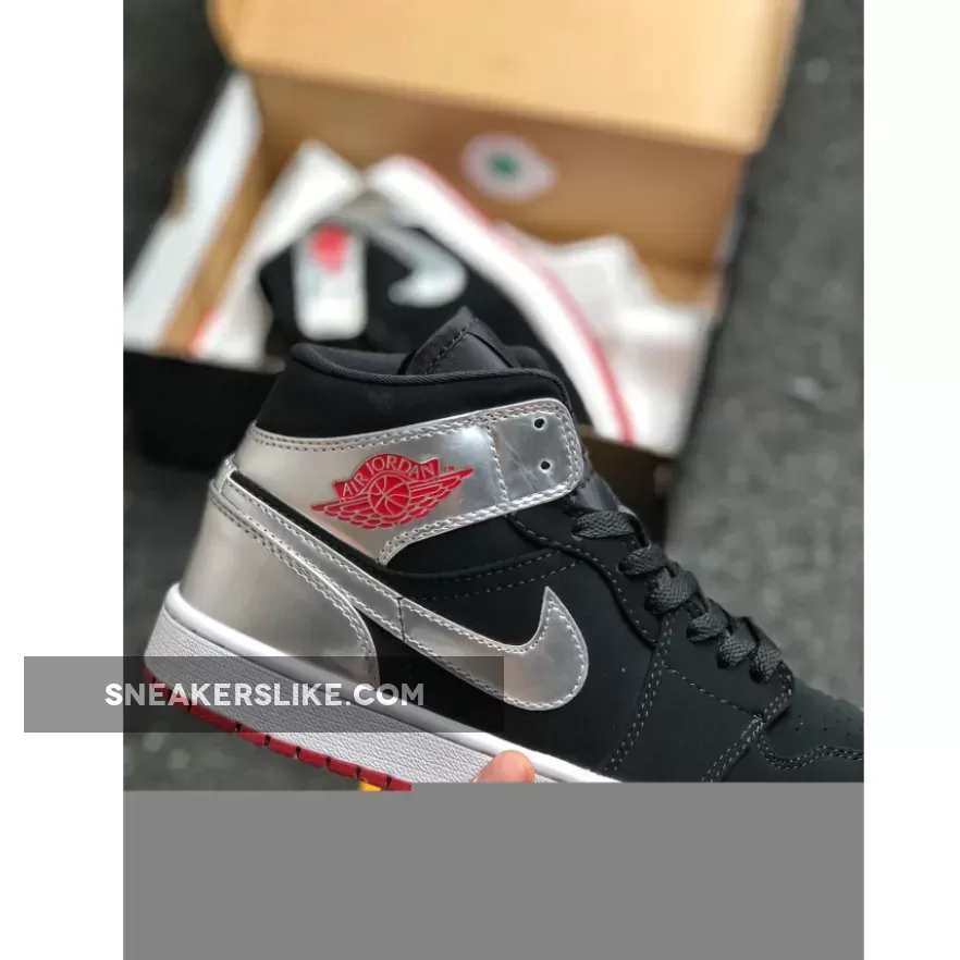 This offering features a Black nubuck upper paired with Chrome Silver overlays and Gym Red contrasting accents throughout.