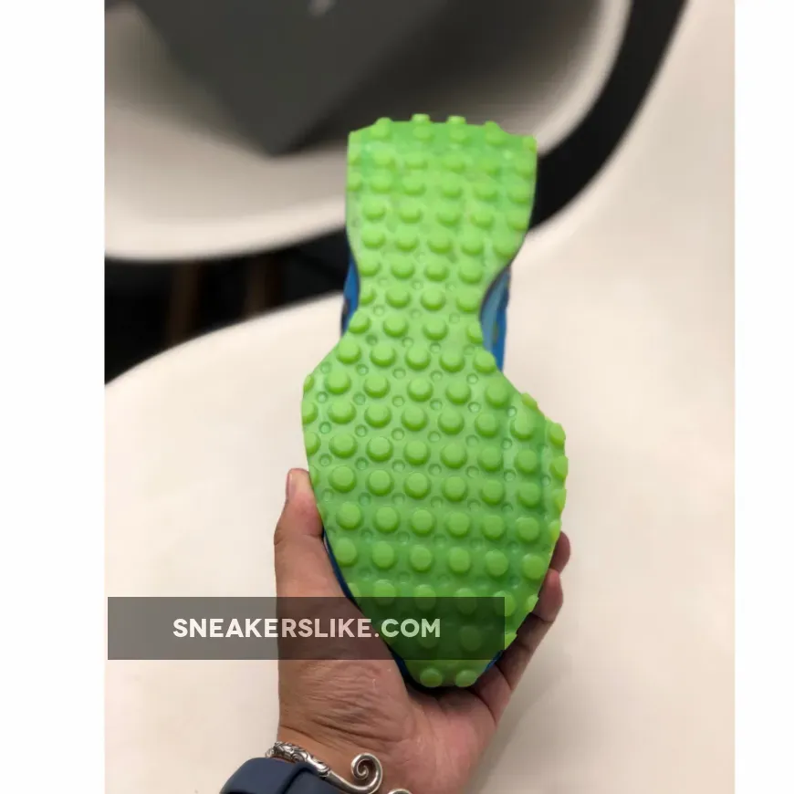 the sweet tooth-inspired makeup has now revealed itself by way of detailed imagery. Fashioned in a way that best represents the packaging of the cavity-causing treats, the rendition sports a bold blue upper half with dark navy lateral “N” logos, and features neon branded hits atop the tongues/medial heels and the band of grumpy Jolly Rancher characters printed just above the interior mid-foot.