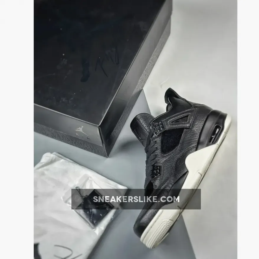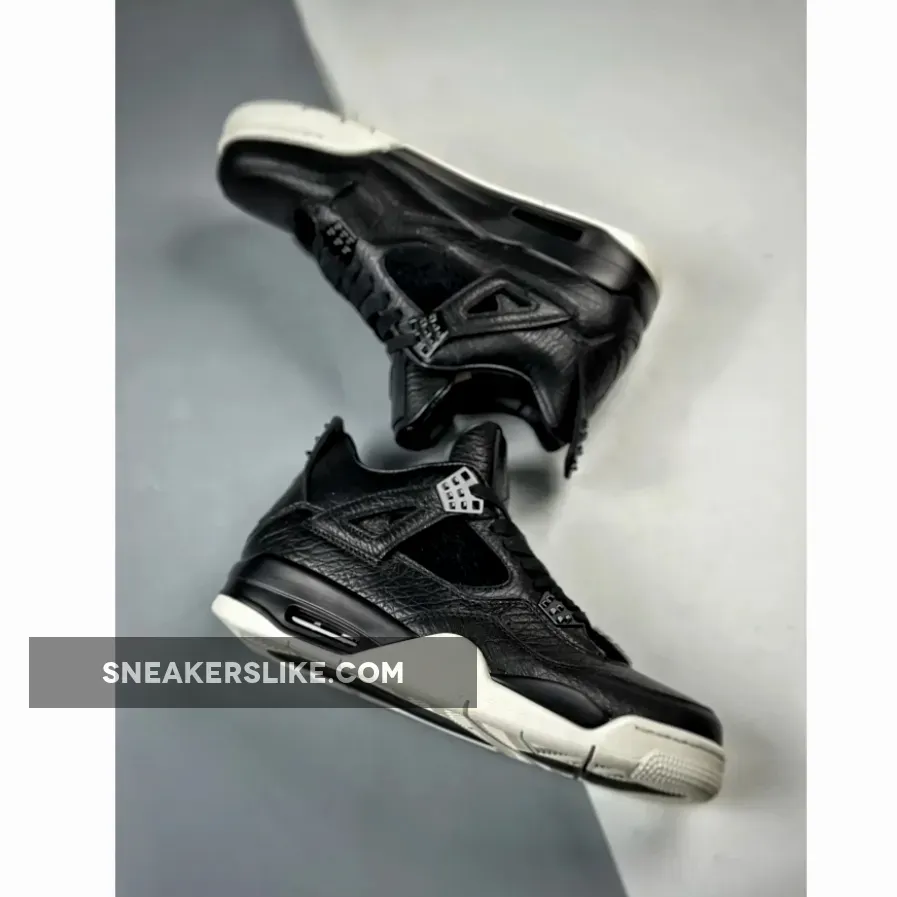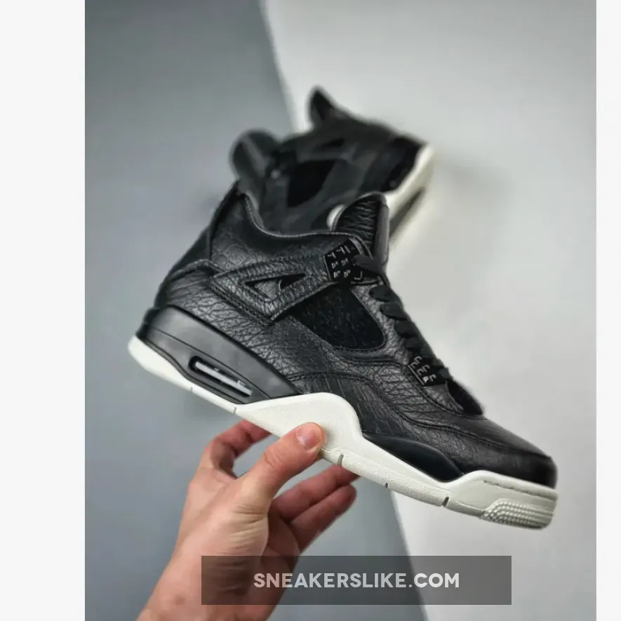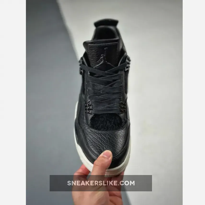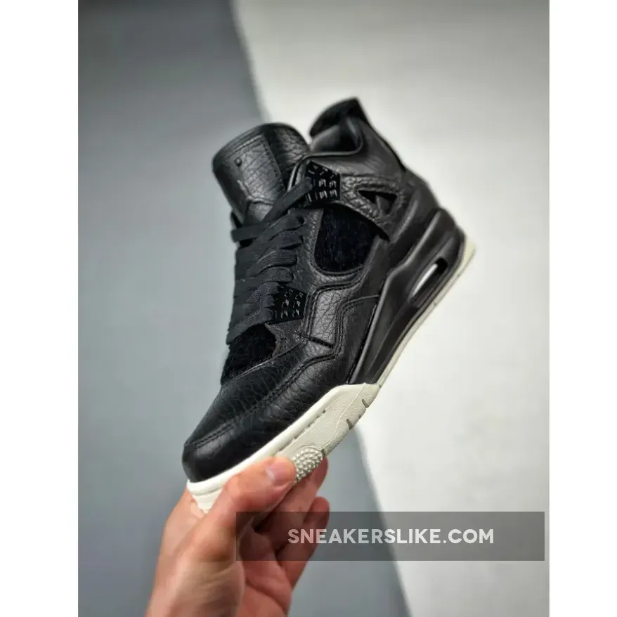 This Premium edition of the Air Jordan 4 is built with similar detailing as the Pinnacle releases with a Black premium tumbled leather construction that includes faux pony hair on the tongue, exotic textured skin embossing on the collar, waxed laces, quilted insoles and premium detailing throughout.