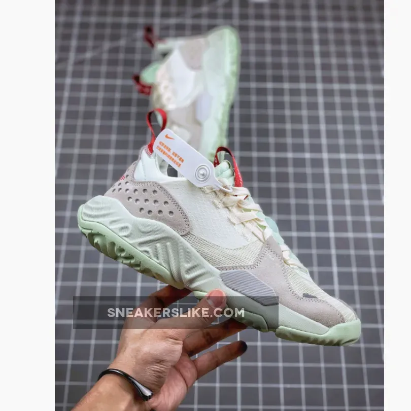 The Jordan Delta SP Jade Aura is a brand-new colourway of Jordan Brand’s most recent silhouette. It focuses on being a high-performance training shoe that can also act as a streamlined street sneaker, and does a great job at doing so. Decked out in a clean pale-green edition, these are perfect for the warmer months. The uppers here are crafted mainly from technical mesh to keep the pair lightweight and durable, although panels of suede break up the look and add a luxury touch. Branding is kept to a minimum to emphasise the stealthy look, with a sleek new version of the label’s classic wings logo featured at the heel. This model is certainly one to watch, and is one of the best new Jordan silhouettes in recent memory. In the meantime, stay locked into Our Store Supplier for all the latest footwear news as it happens, that way you won’t miss a thing.