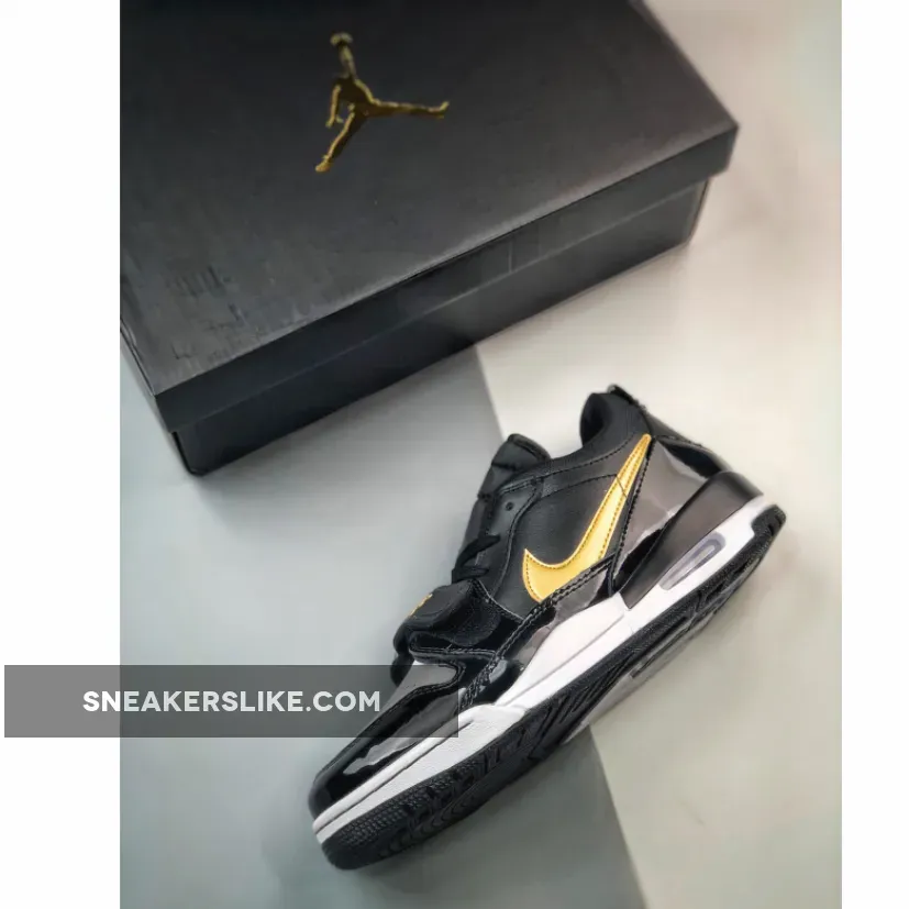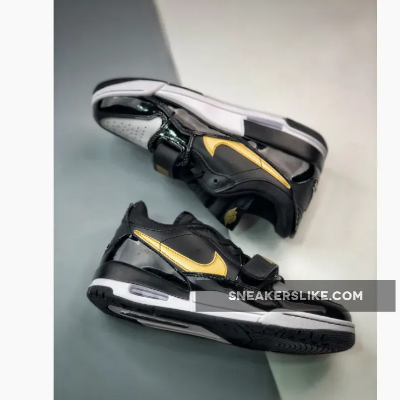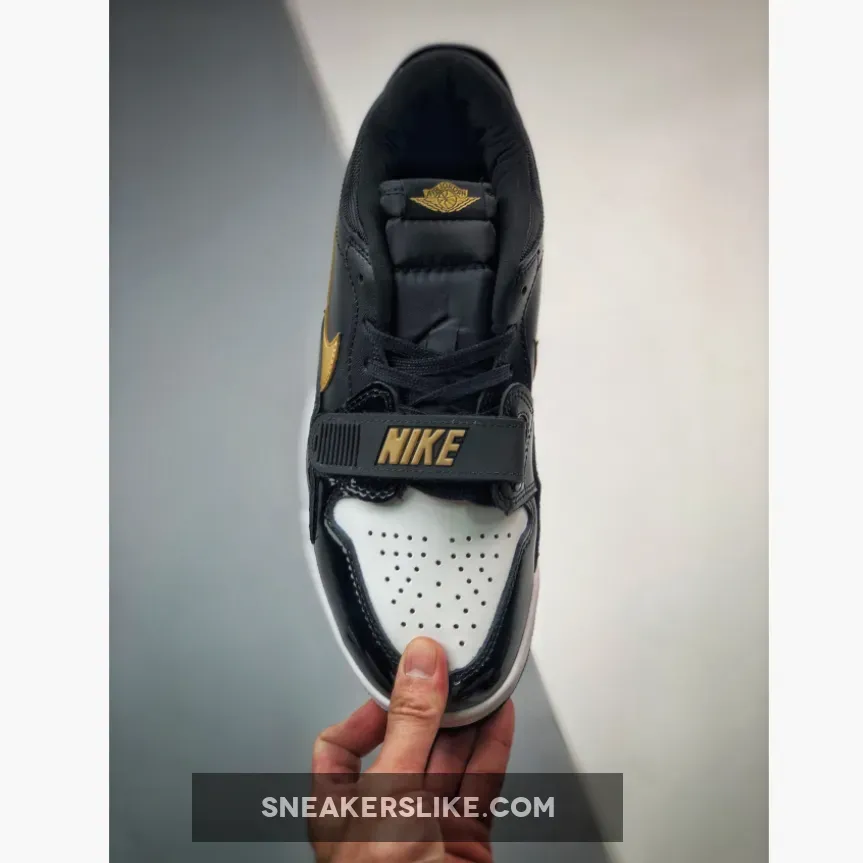 The Jordan Legacy 312 Low Patent Black Gold has all the elements sneakerheads love in a sleek sneaker. It has a dynamic design and a versatile colourway that’s anything but garden-variety. This particular pair comes with a mixed upper: smooth white leather for the perforated toe, black patent leather for the mudguard, grainy leather for the side panels and black mesh for the collar.