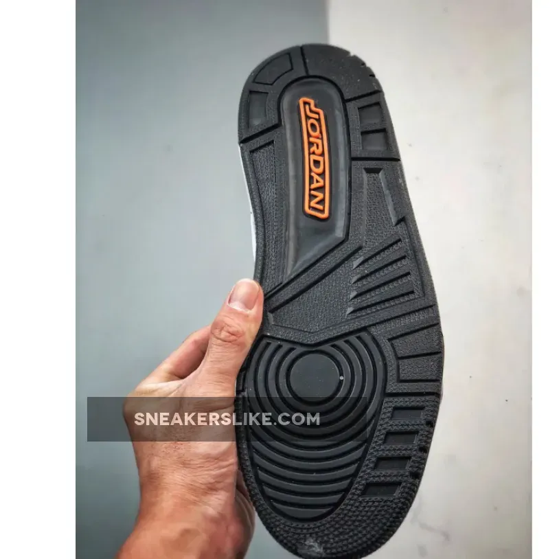 Vibrant Orange accents on branded areas infuse the shoe with the distinctive “Fear” aura but also pay homage to the original Jordan 3 Fear colorway.