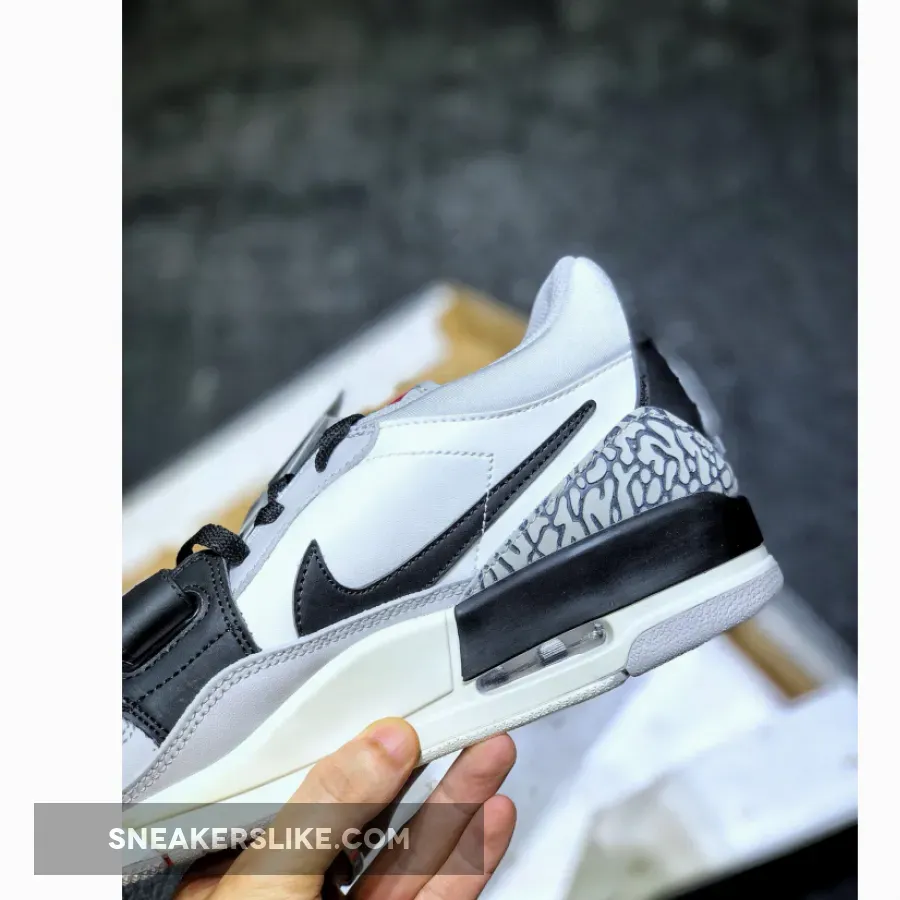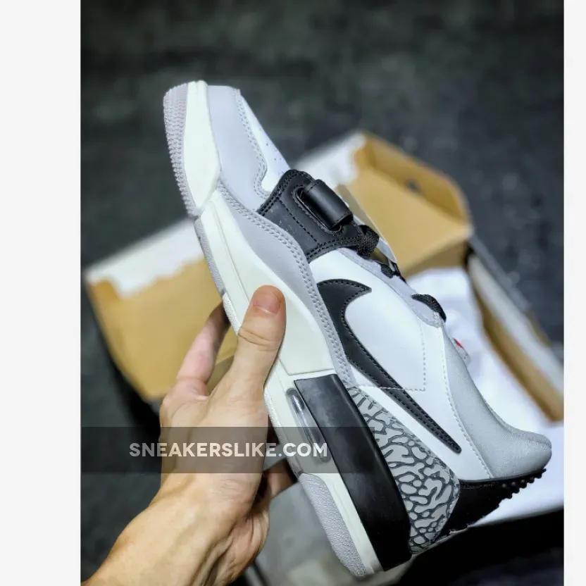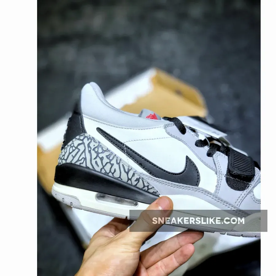 this pair features White leather across the upper while Grey lands on the overlays. Following we have Black on the Swoosh, part of the midsole, strap, laces and heel.Red contrasting accents on the tongue and outsole completed with classic elephant print and vintage-styled midsole while elephant print wraps the heel and Summit White on the midsole to finish the look