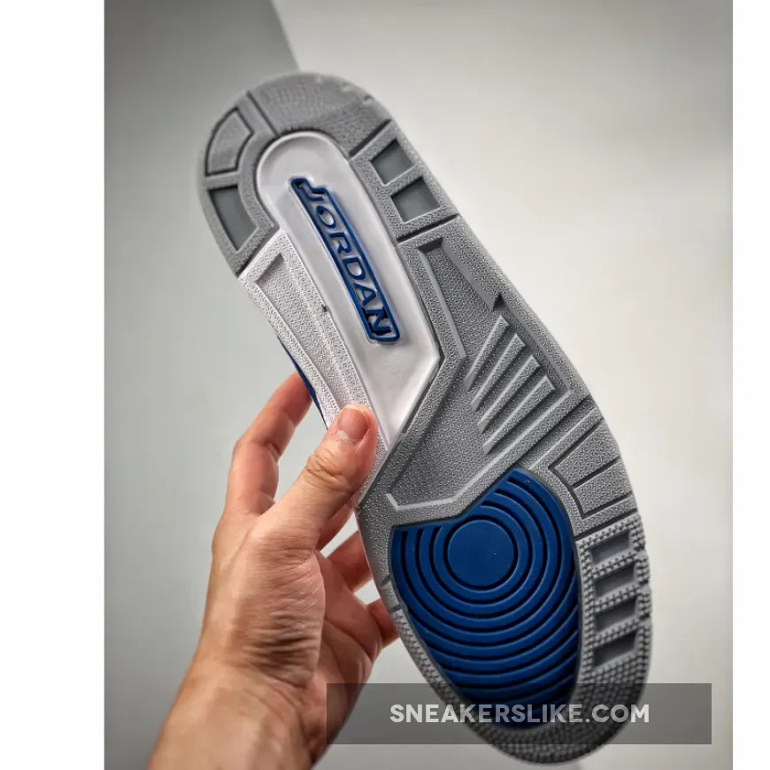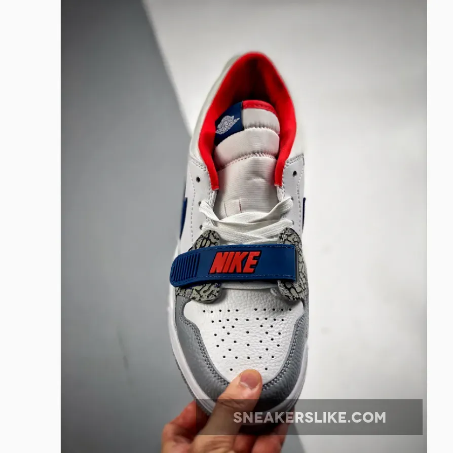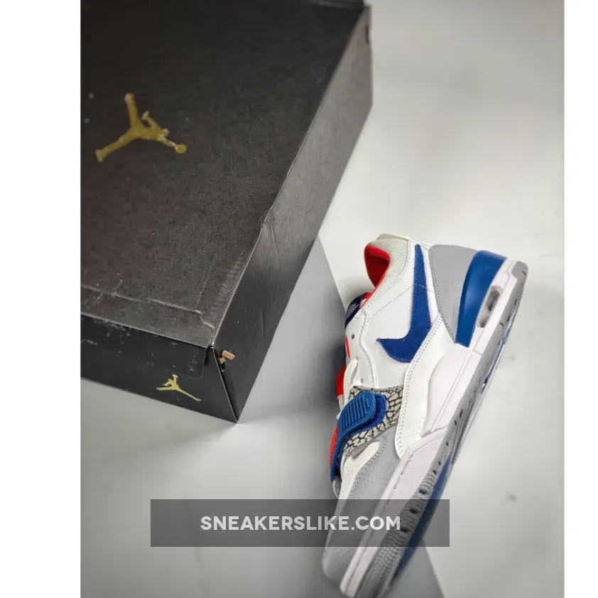 A well-loved shoe makes a comeback. Say hello to the Jordan Legacy 312 Low True Blue. This iteration of the 2018-born silhouette features the “Cement” print on the forefoot instead of the backside. Meanwhile, the smooth white leather base is retained. On top, grey and navy blue overlays take the spotlight against the neutral background. Finishing touches include the Nike-branded blue strap and red accents at the collar.
