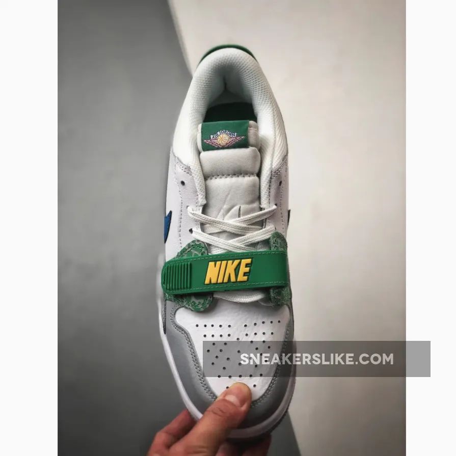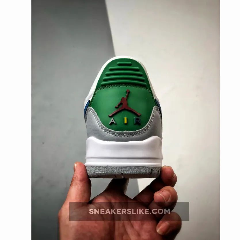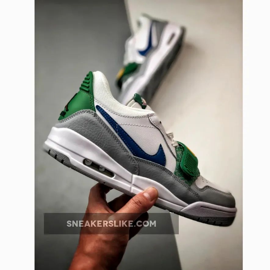 This design seamlessly merges iconic elements from the Air Jordan 3, 1, and Alpha Force. The shoe boasts a combination of leather, synthetic, and textile materials, with a midfoot strap for a snug and secure fit. Additionally, the heel features a visible Air-Sole unit, ensuring excellent responsiveness and cushioning.