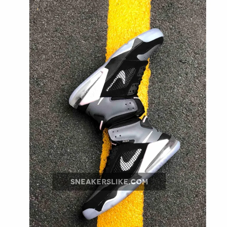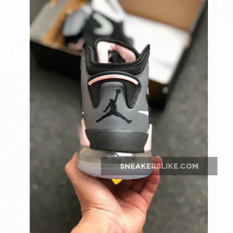 . This iteration sports a Grey leather upper with Black nubuck overlays, a White Swoosh underneath the side netting highlighted with soft Pink accents throughout.