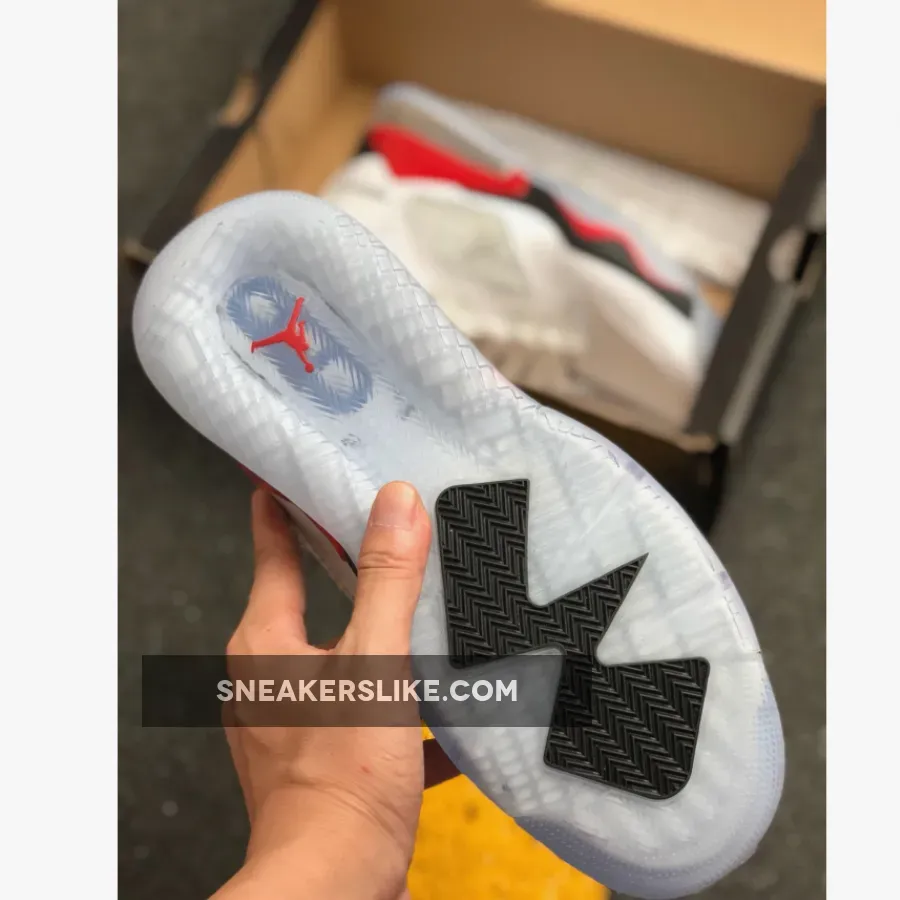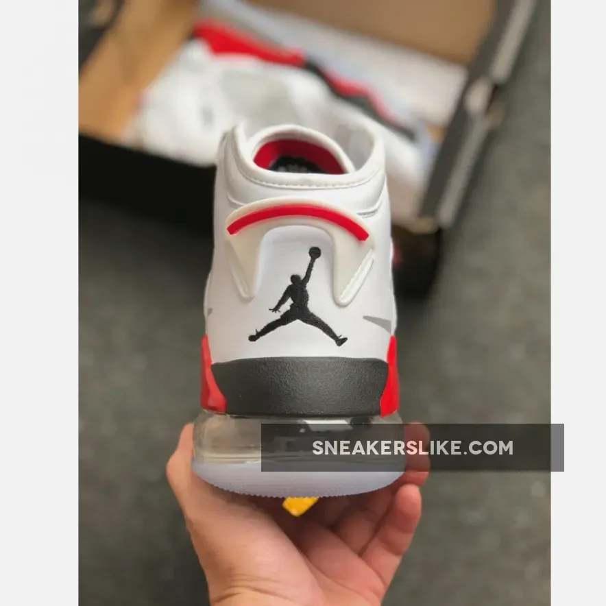 Paying homage to classic Air Jordan colorways, one of those will include an upcoming “Fire Red” iteration. This release features a White leather upper with a Silver Swoosh underneath the mesh netting on the sides.