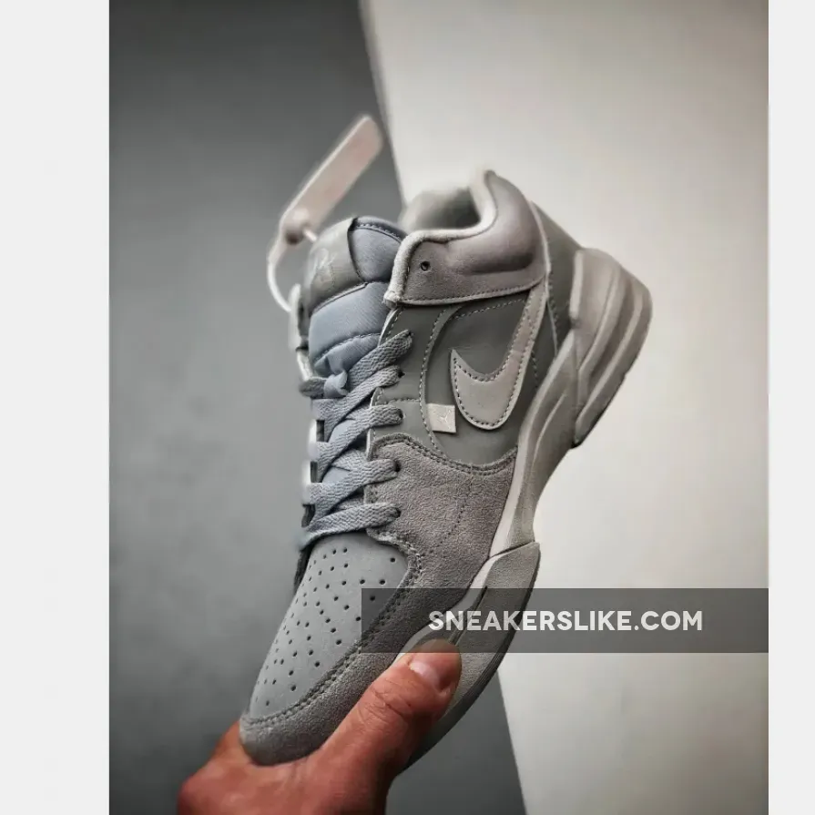 The design narrative unfolds with a bold white Swoosh at the midfoot and a matching midsole beneath. These subtle yet strategic elements break up the monochromatic tones, offering a tasteful and refined greyscale scheme. It’s a visual statement that exudes elegance and sophistication.