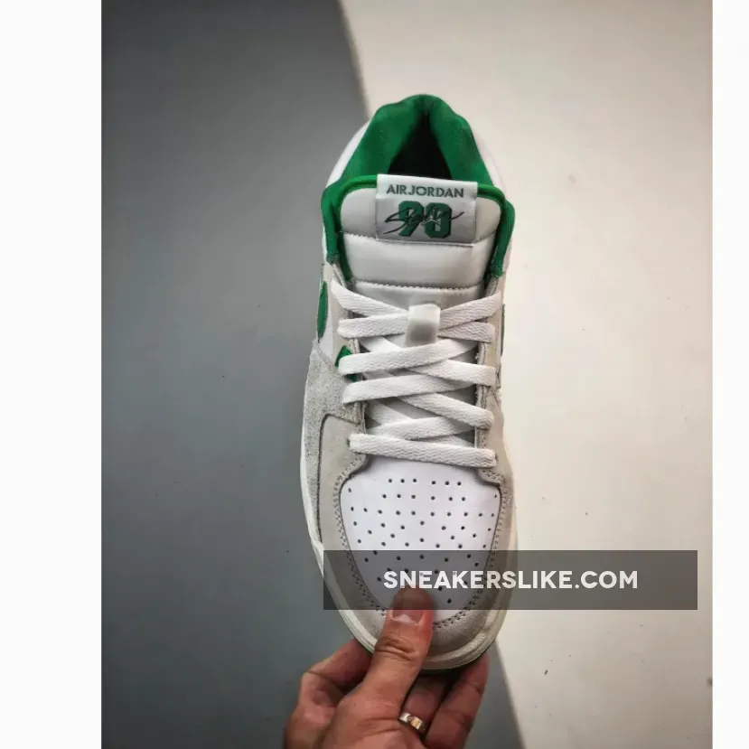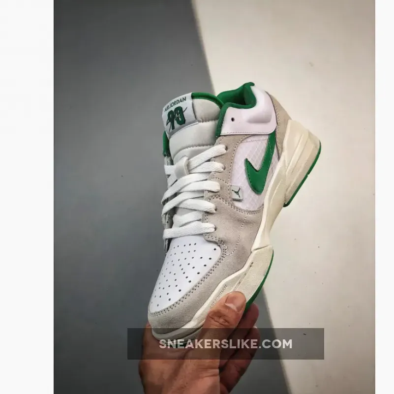 This is the fourth colorway revealed by Jordan Brand that arrives in a White base with suede overlays and Green tumbled leather Swooshes and contrasting accents throughout.