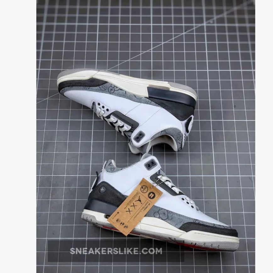 Each pair is handmade and constructed using premium leather and suede. The custom takes its cues from KAWS’ existing Jordan Brand collaboration, replicating the embossed suede look along the gray mudguard and toe box. A white leather base is complemented by button detailing and a KAWS companion logo on the heel in place of the traditional “Nike Air” text. The tongue features KAWS’ “XX” eye logo.
